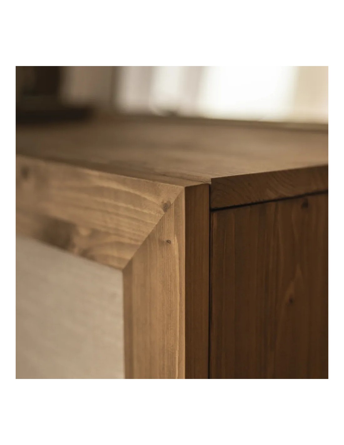 Aparador de madera maciza y tejido de lino de 2 puertas en tono roble natural de 80x40x100 cm(h)