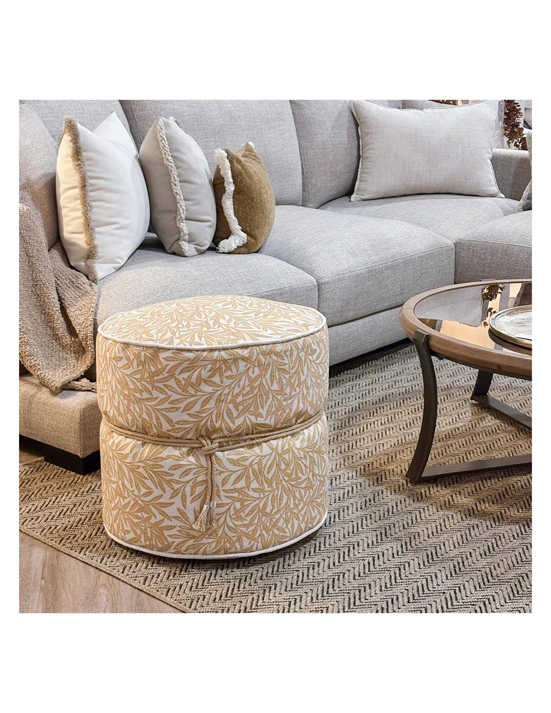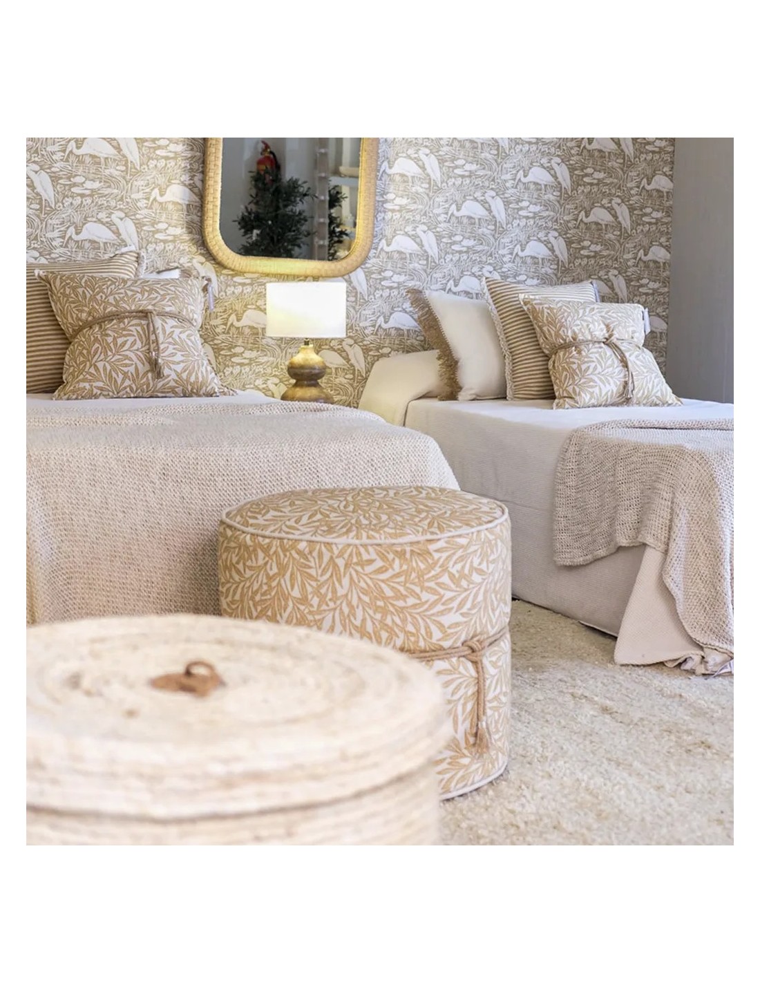 Pouff redondo hojas ocre nudo yute 50X50X45