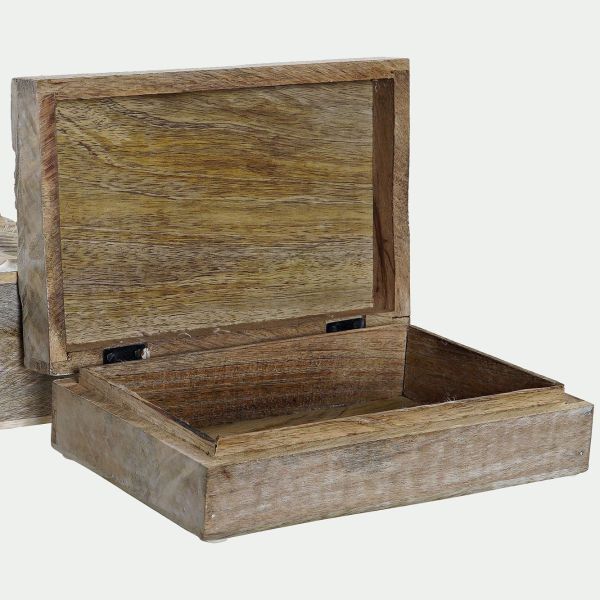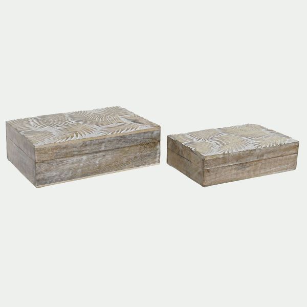 CAJA SET 2 MANGO HOJAS NATURAL MARRON 25,5X18X8 CM