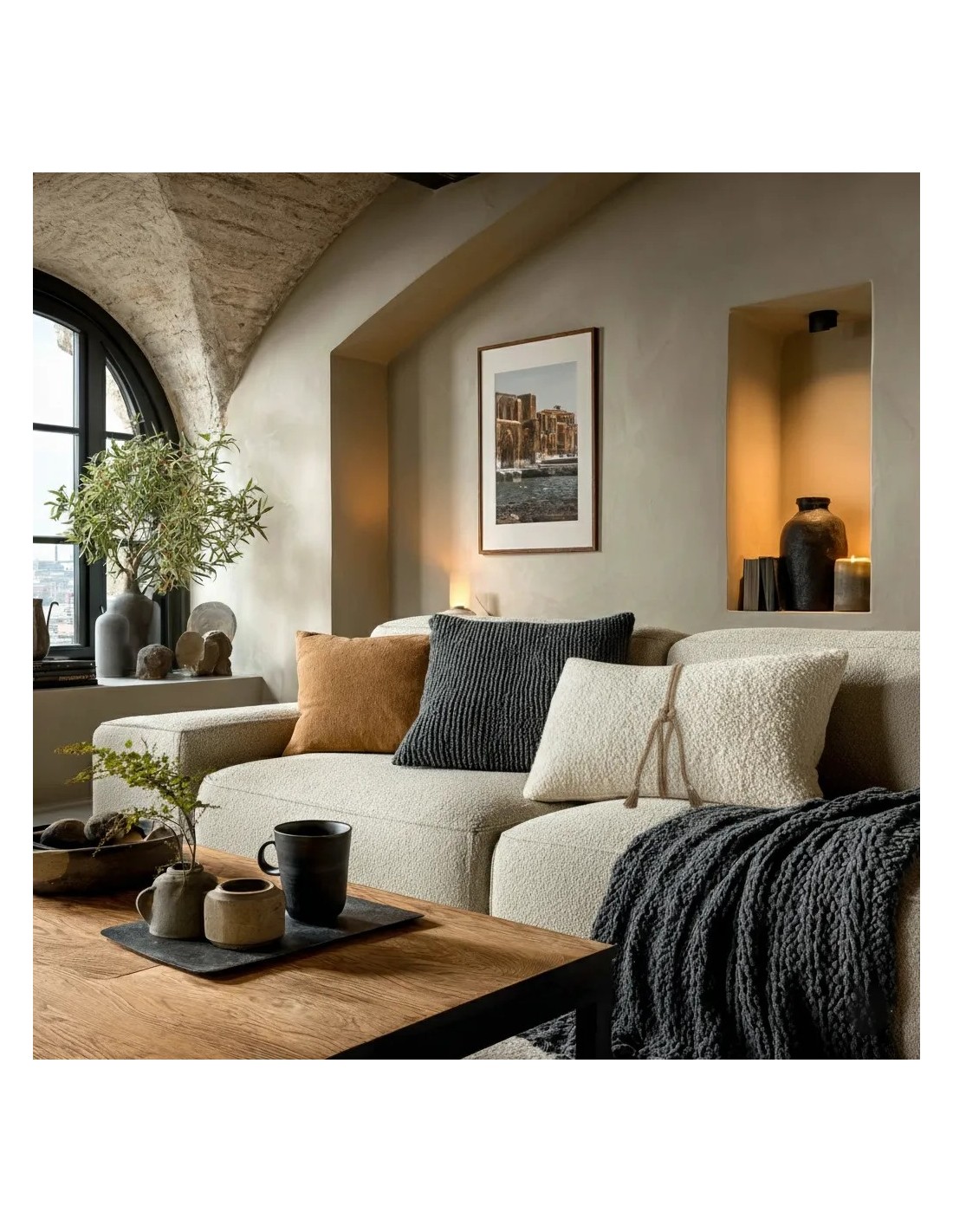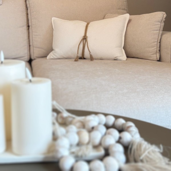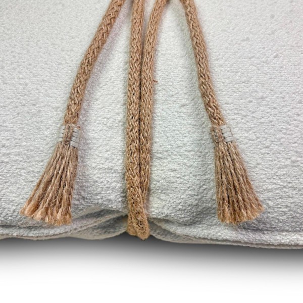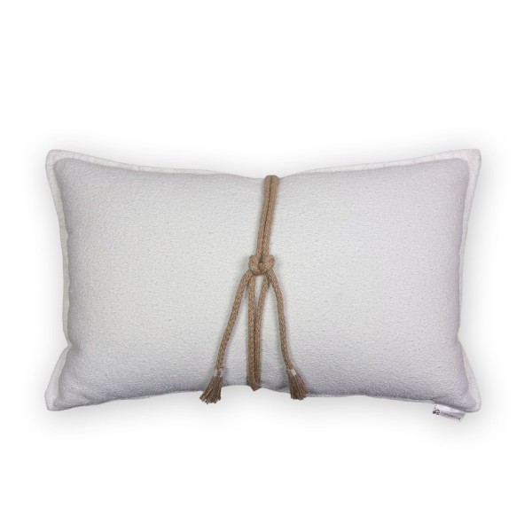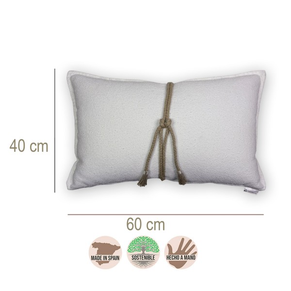 Cojín blanco nudo yute vertical 60X40 Relleno premium incluido