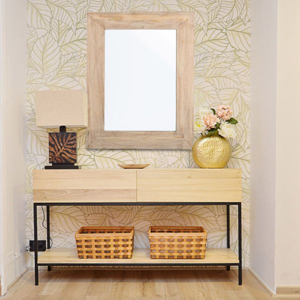 ESPEJO PARED RECTANGULAR MARCO MADERA NATURAL 72X92X3 CM.