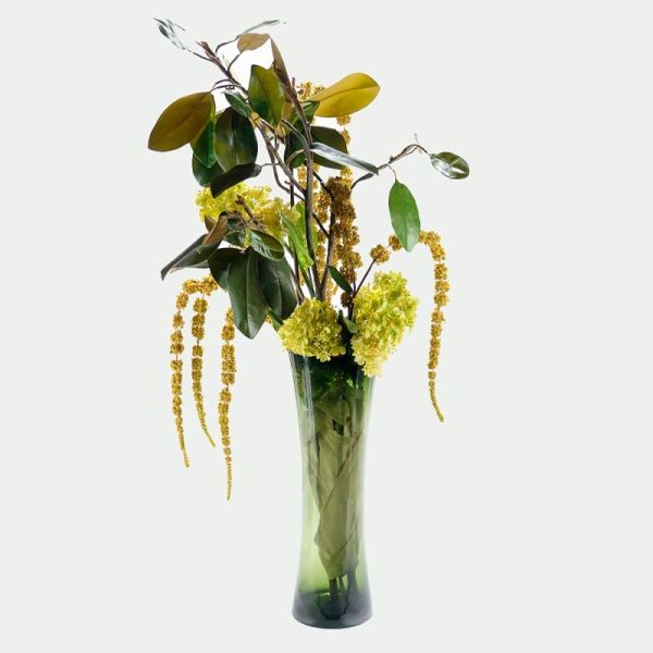 Jarrón florero cristal alto 16x50x16 verde musgo