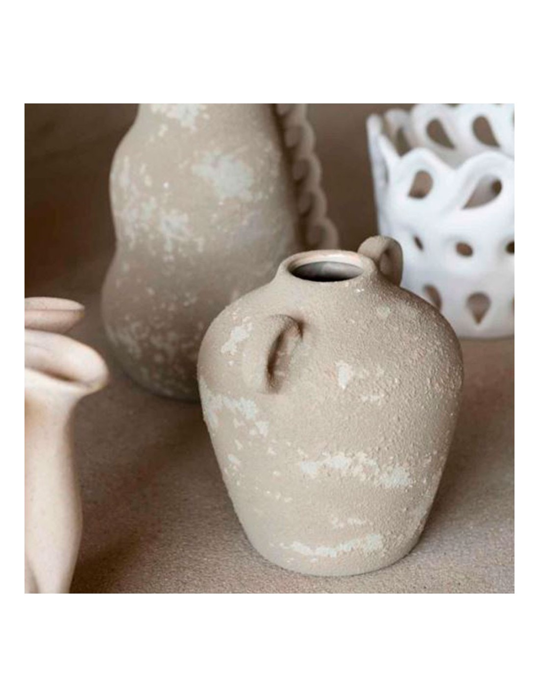 JARRON CERAMICA DESGASTADO RELIEVE MARRÓN 18X15.5X17 CM