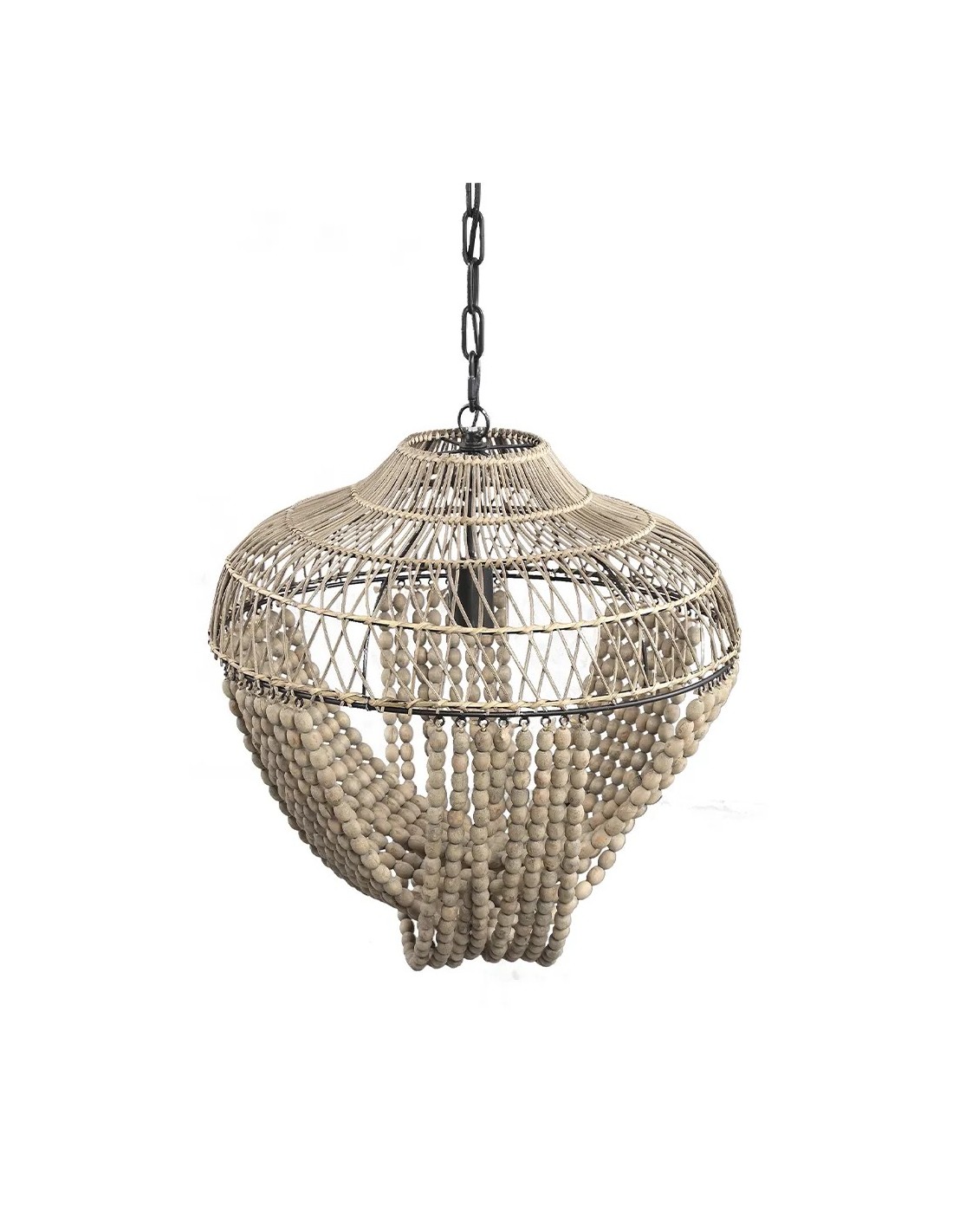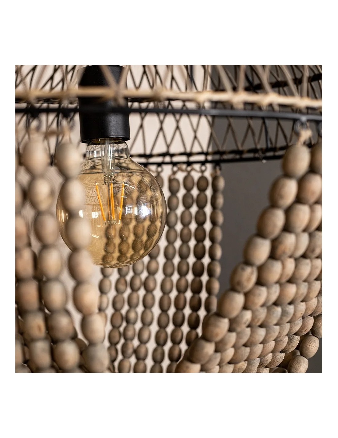 Lámpara techo metal negro cuentas collar marrón claro 50x157x50
