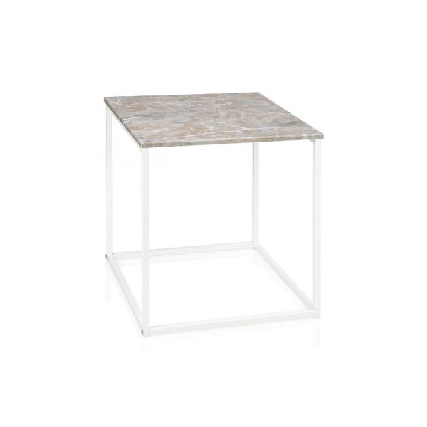MESA AUXILIAR BASE METAL TAPA EFECTO MARMOL BLANCO 40X40X42