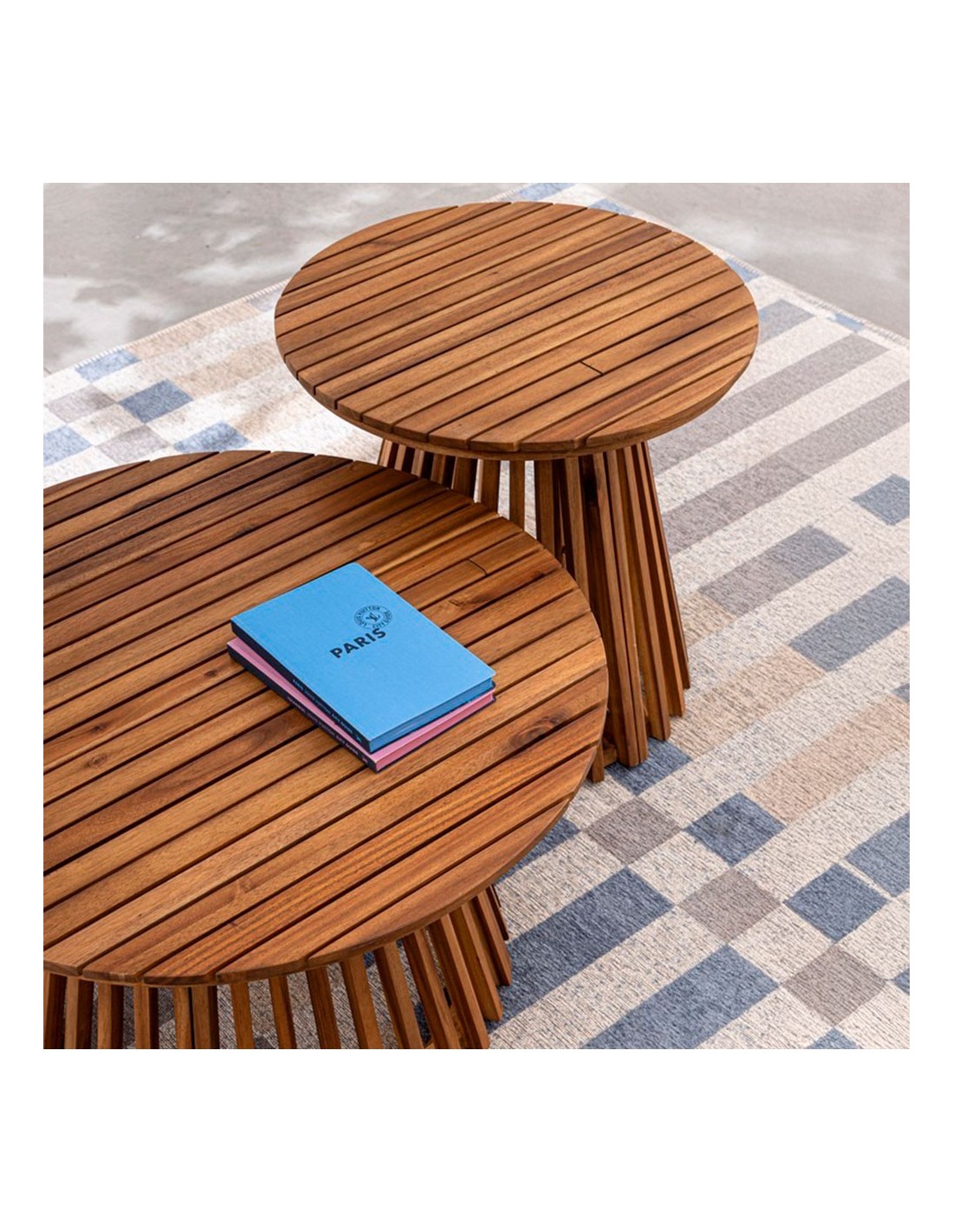 MESA AUXILIAR REDONDA APTA EXTERIOR 50X50X45 PALILLERIA MADERA NAT. ACACIA