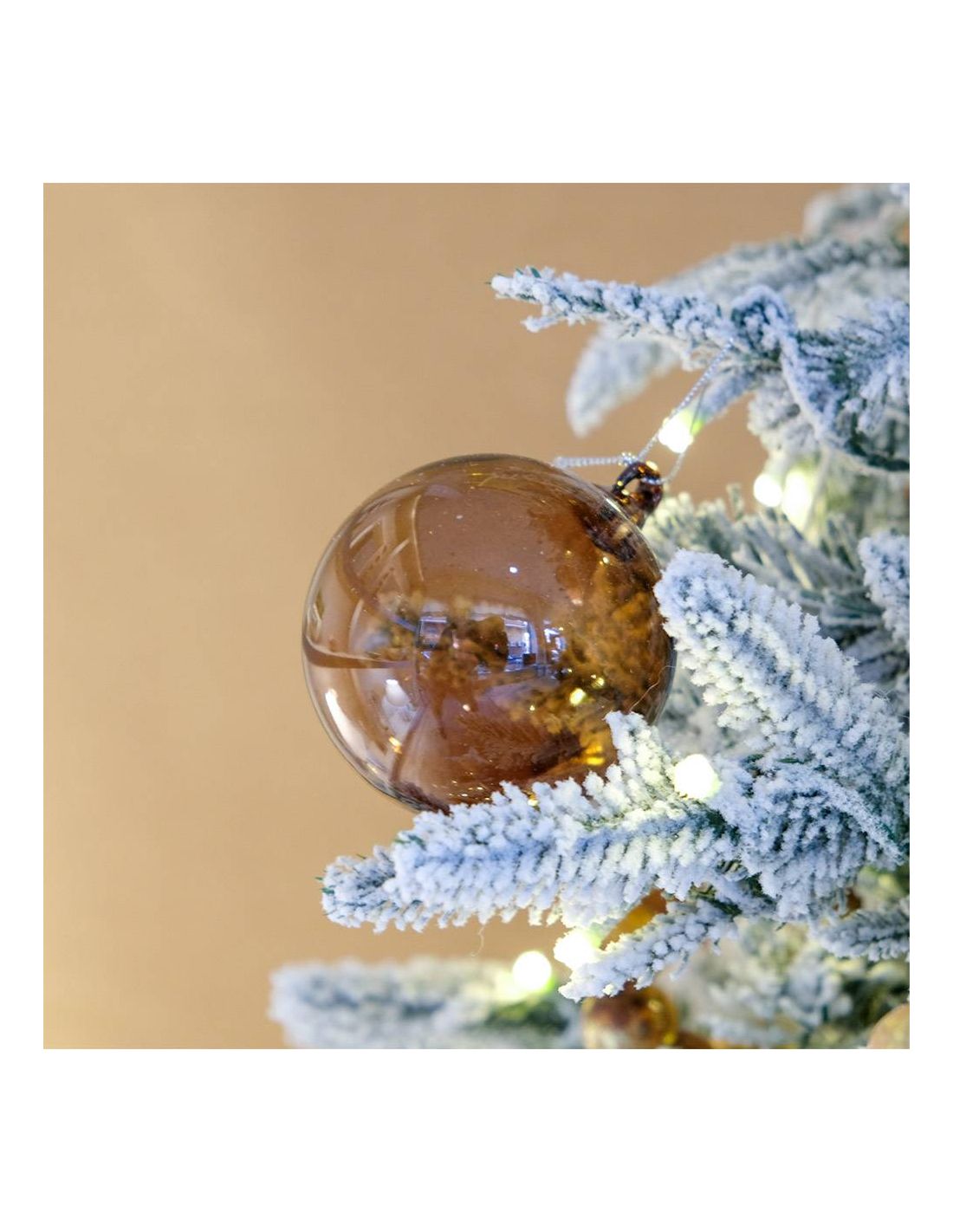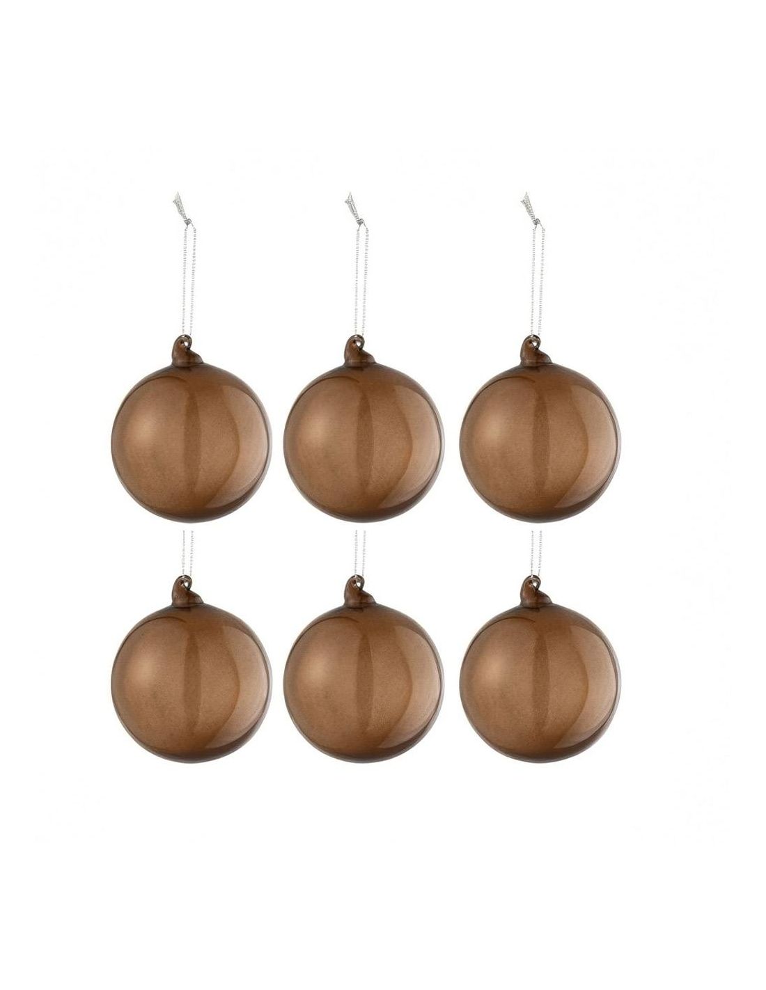 CAJA DE 6 BOLAS COLGANTES LISO TRANS MARRON SMALL 8X8X8
