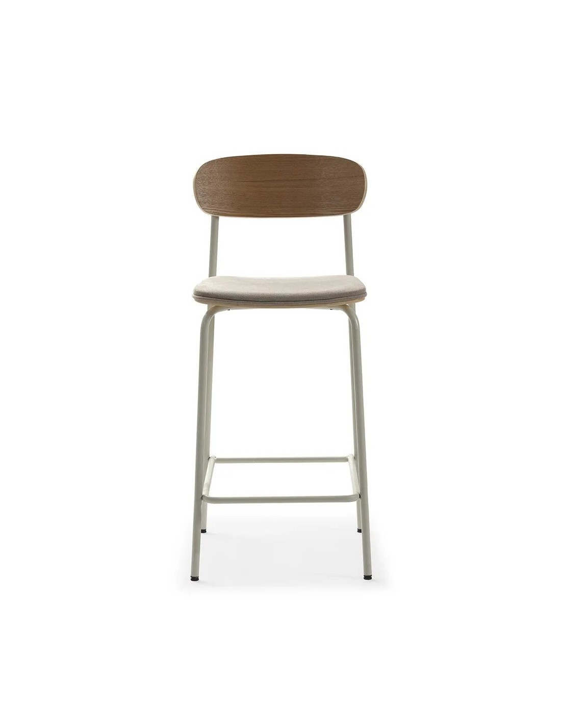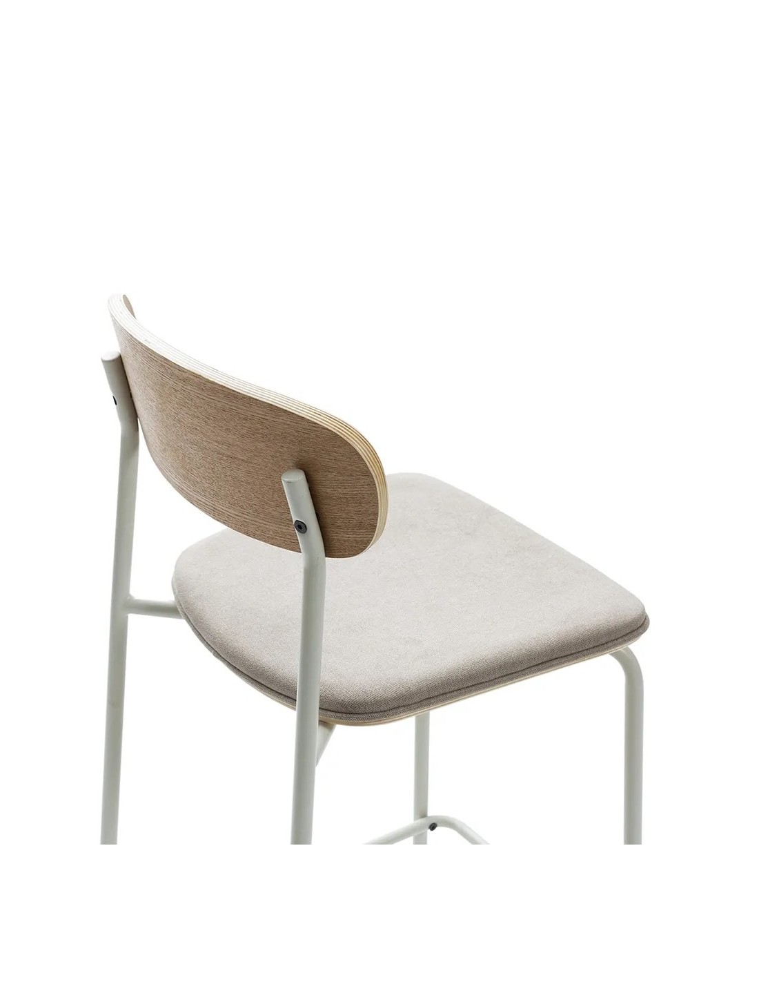 TABURETE SILLON BEIGE RESPALDO MADERA PATAS BLANCAS 42X48X94,5 CM