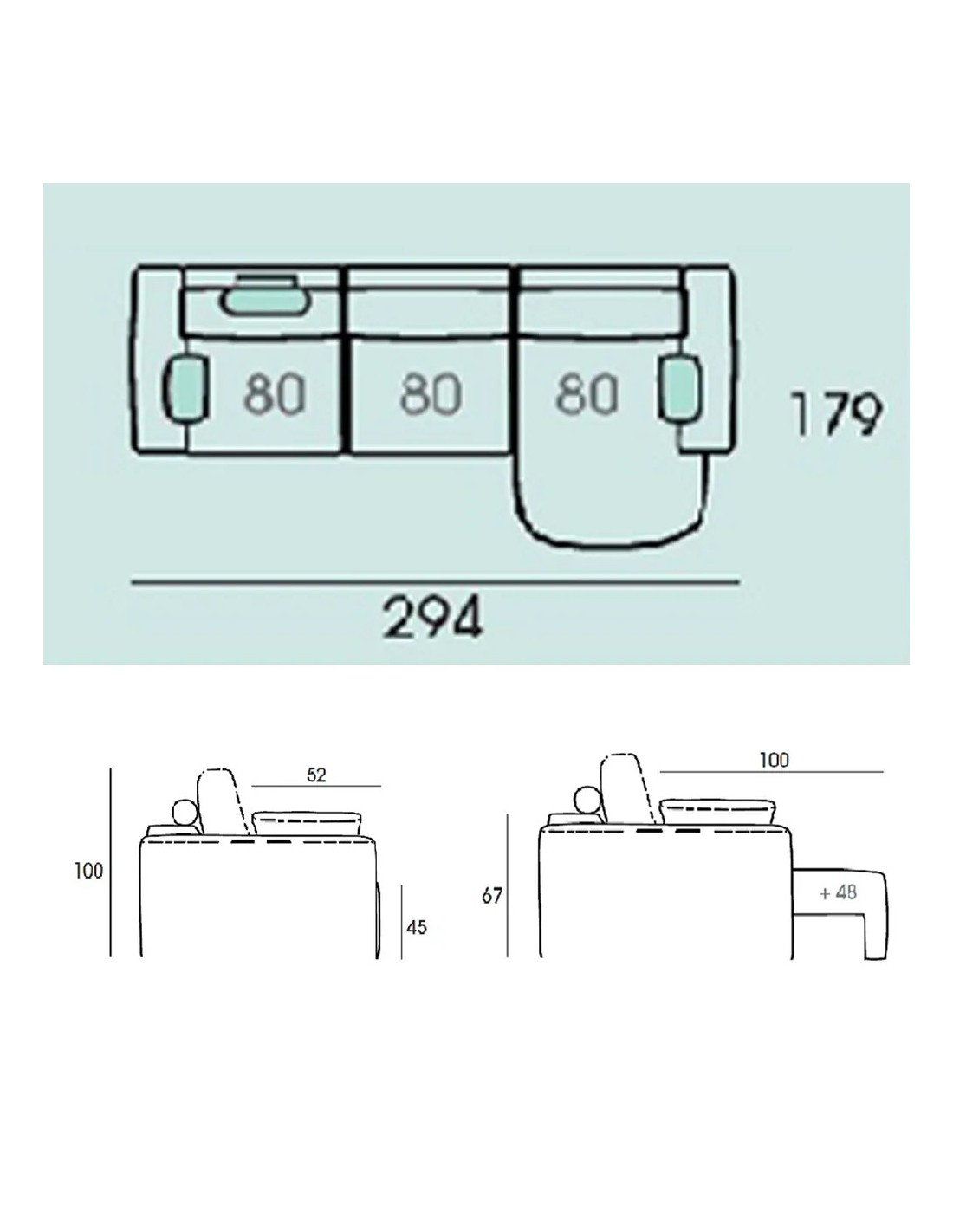 NUBE SOFÁ 2P 80 DESLIZ MOTOR CHAISE DCHA (S.ZERO) 294X179