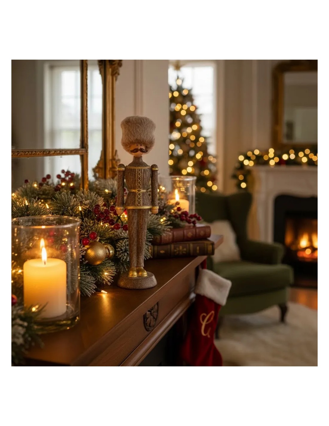Añade un toque festivo a tu hogar con este Cascanueces decorativo de piel y gorro de lentejuela. Perfecto para enriquecer tu decoración navideña con un encanto clásico y brillante.