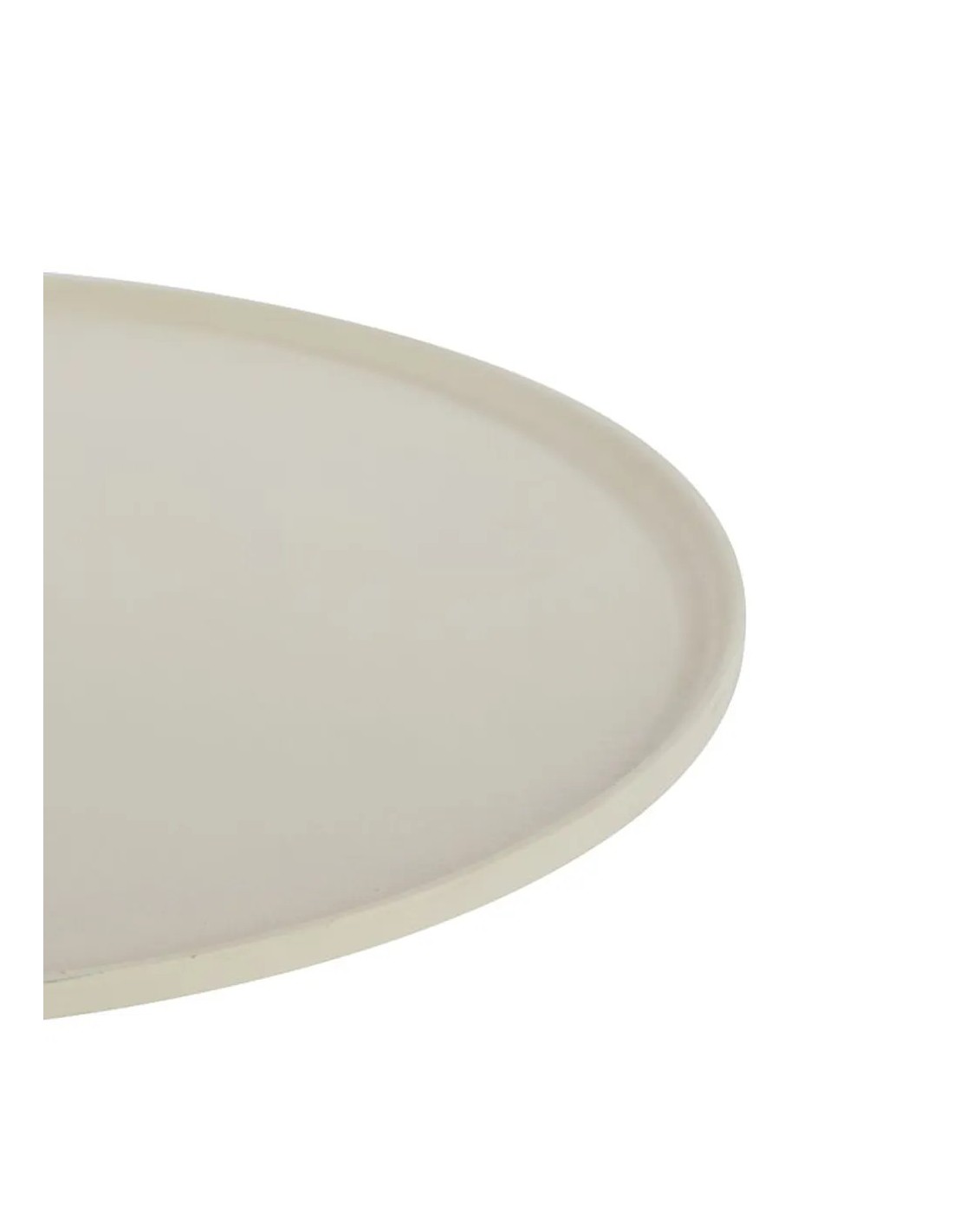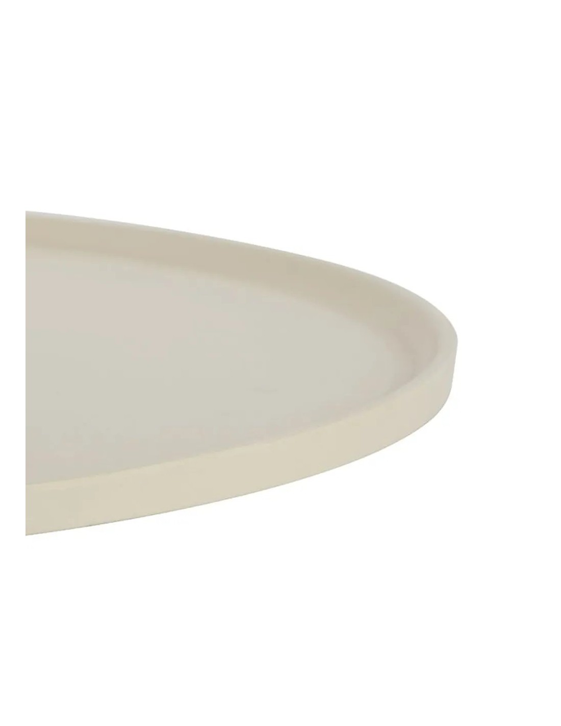 Bandeja metálica redonda de 50 cm de diámetro y 2 cm de altura en acabado crema, una pieza elegante y neutra para decorar con sutileza.