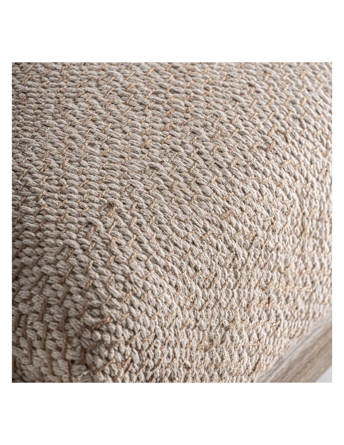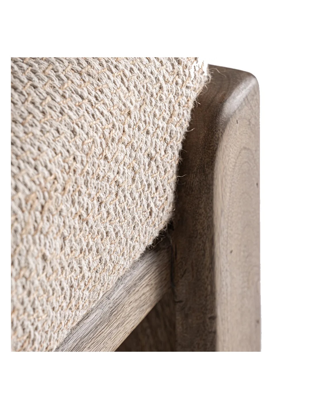 Esta banqueta fusiona funcionalidad y elegancia natural en una pieza equilibrada y atemporal. Su estructura de madera de mango aporta solidez y carácter, mientras que el asiento tapizado en yute artesanal en tono blanco roto añade textura y un aire relajado de inspiración natural.