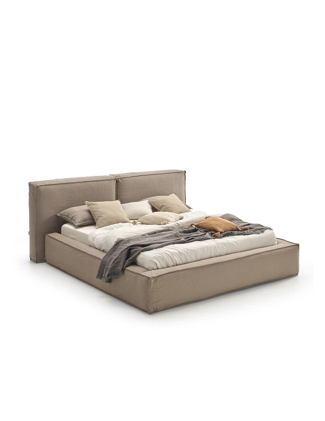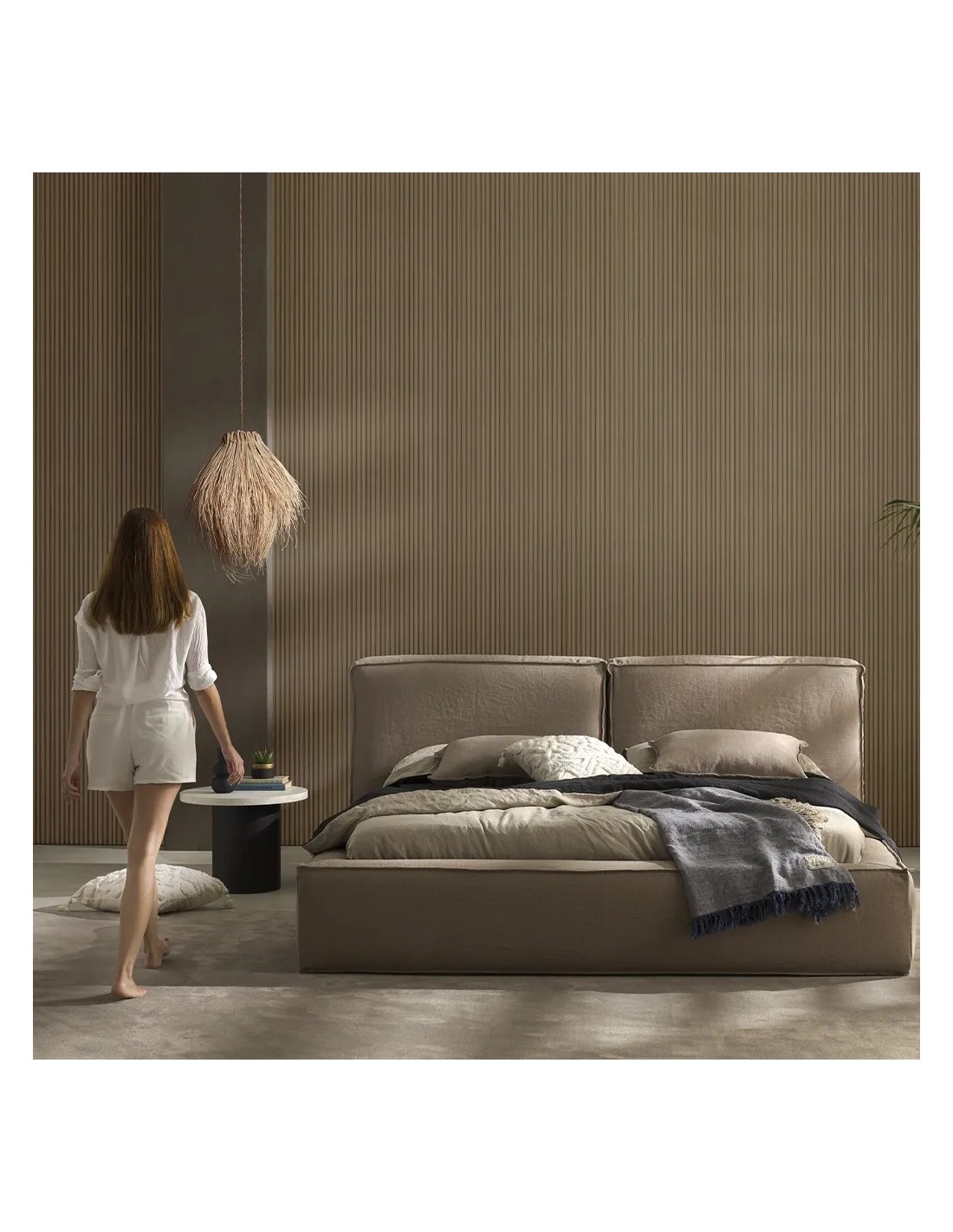 Cama completa con cabecero doble y estructura tapizada de líneas suaves, pensada para transformar tu dormitorio en un refugio de estilo y serenidad. Su diseño envolvente y estética cálida aportan elegancia y confort premium. Tapizado desenfundable para facilitar el mantenimiento. Medidas: 190 cm de ancho × 230 cm de largo. Compatible con colchones de 135 a 200 cm. La estructura crece +55 cm de ancho y +40 cm de largo según el colchón elegido. Incluye: