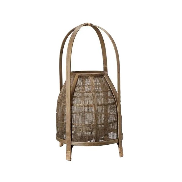 Portavelas decorativo hecho de bambú y lino natural, que combina texturas orgánicas y luz suave para crear ambientes acogedores y serenos. Ø27