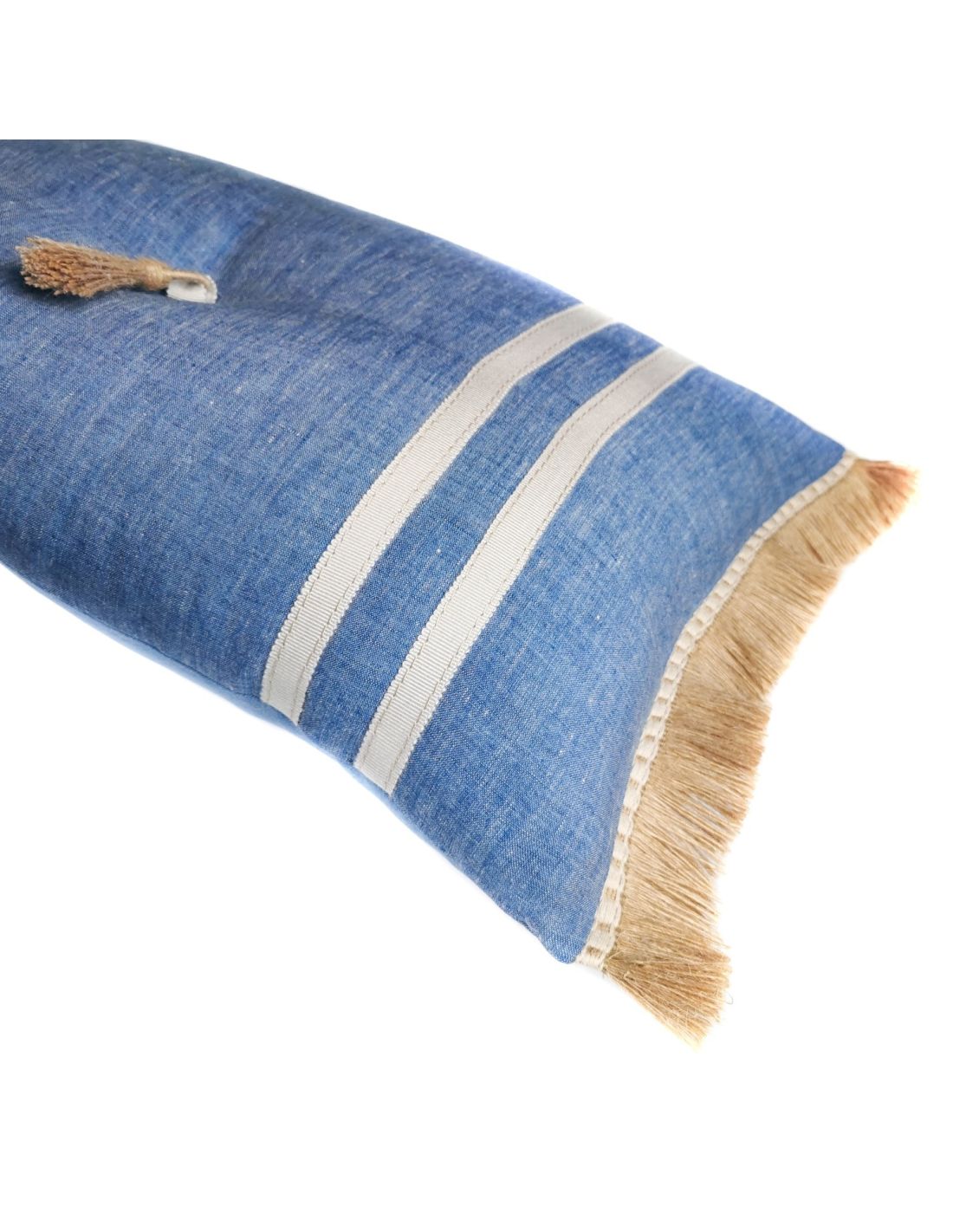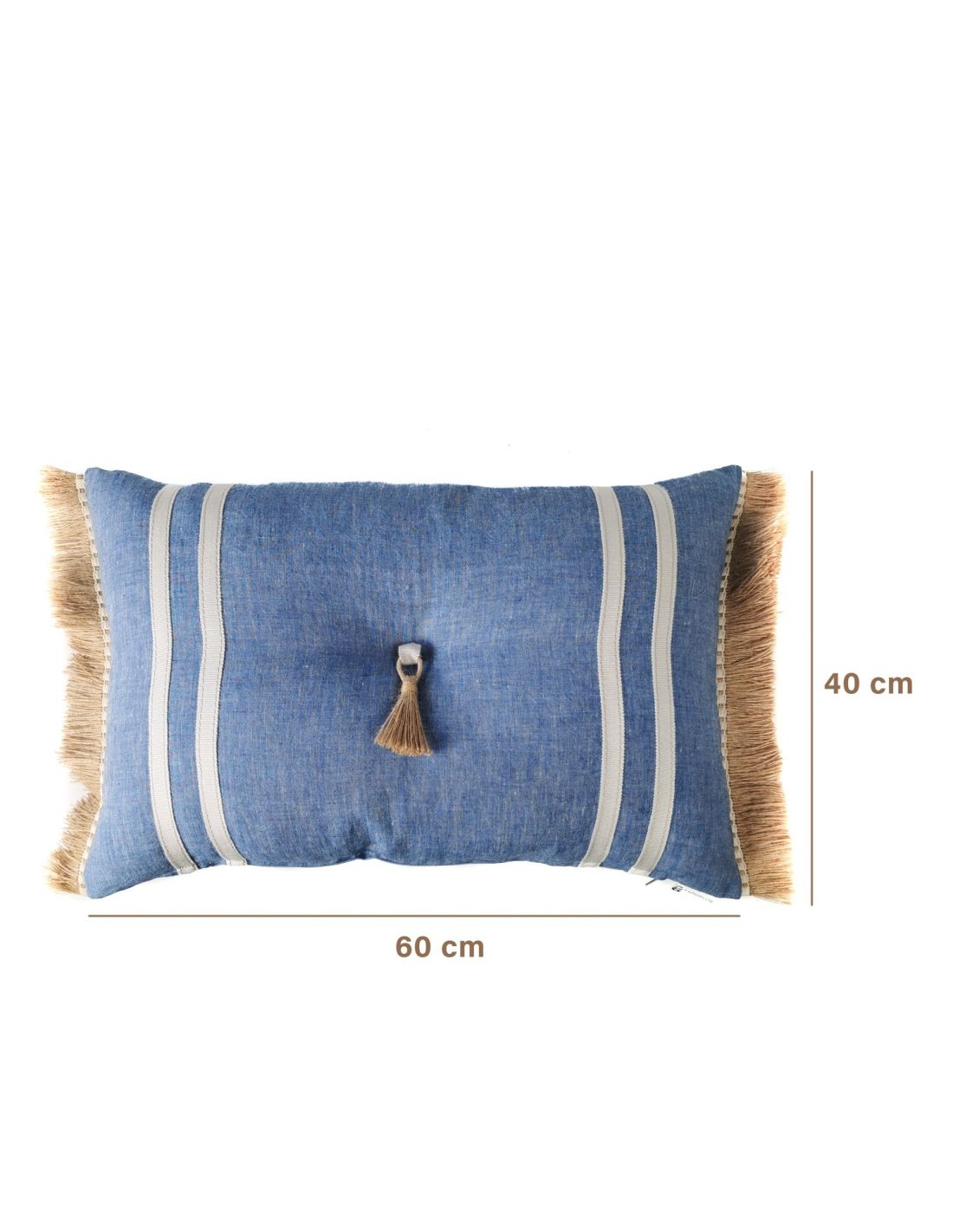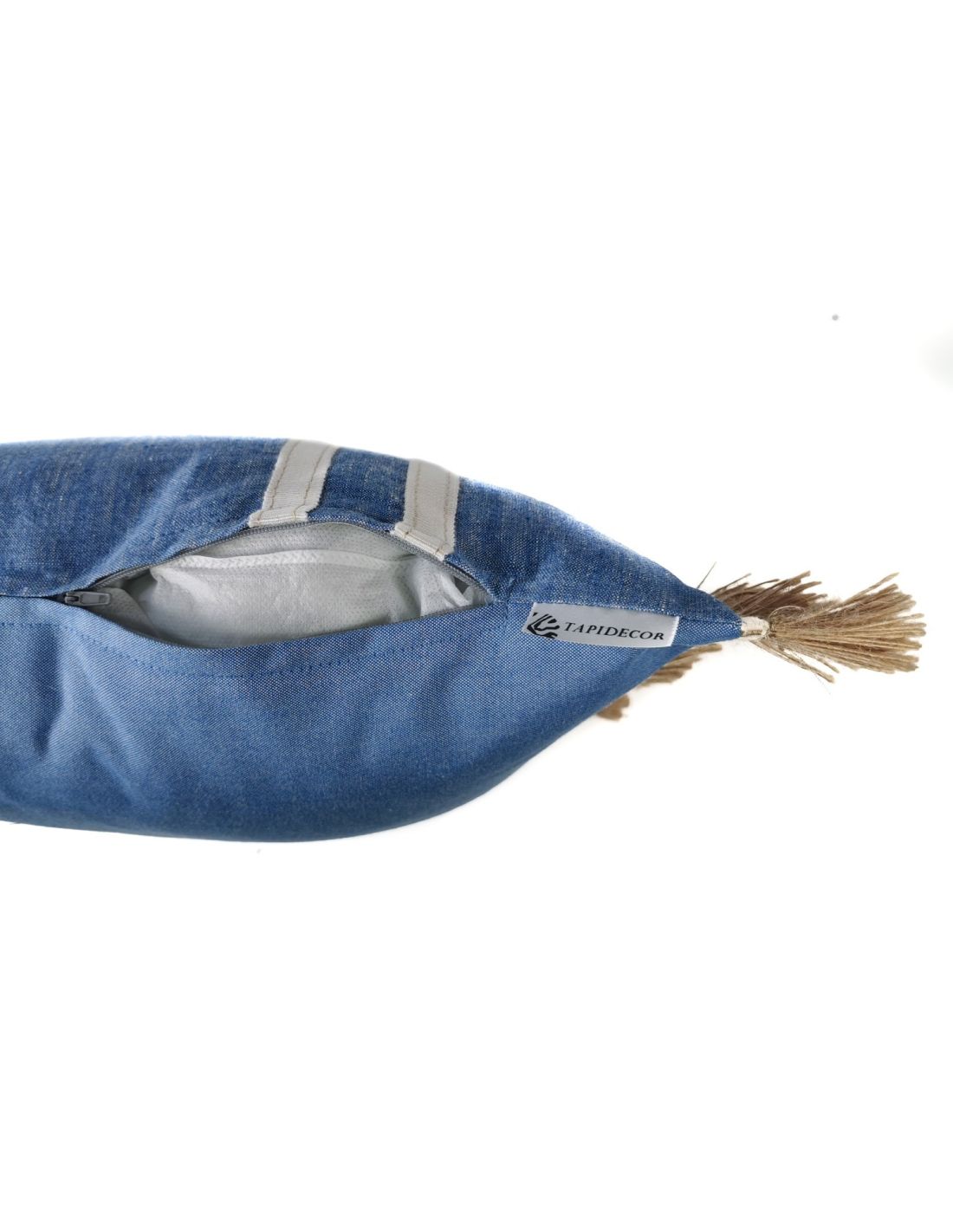 Cojín 60X40, relleno Premium efecto pluma incluido, Azul vaquero flecos lateral y centra, Colección Azur Sense