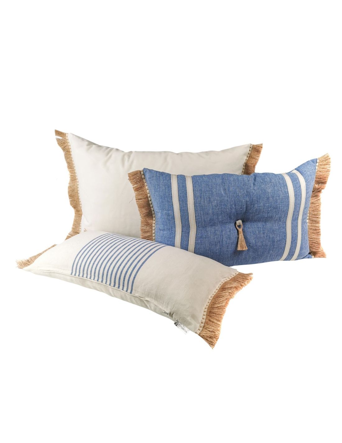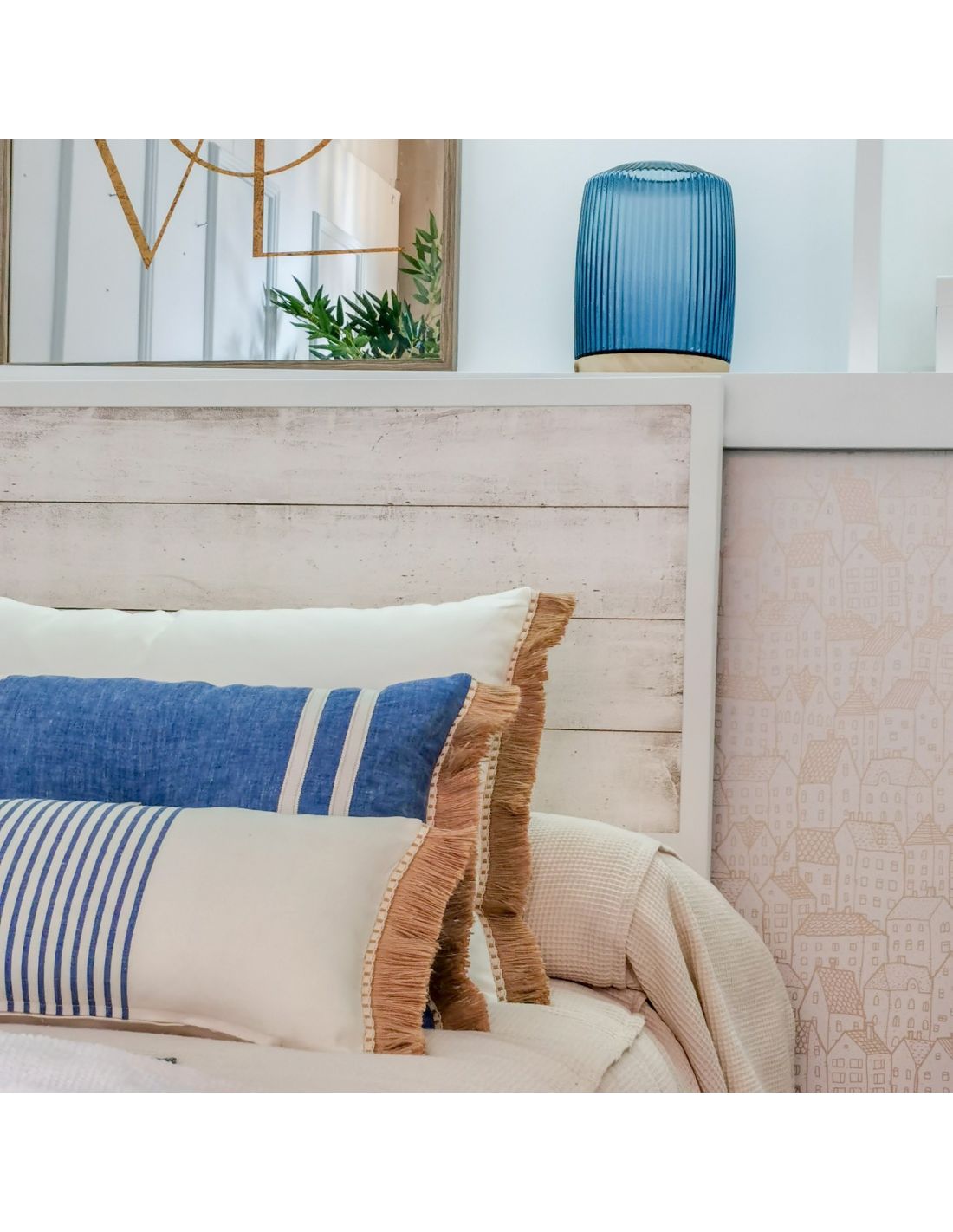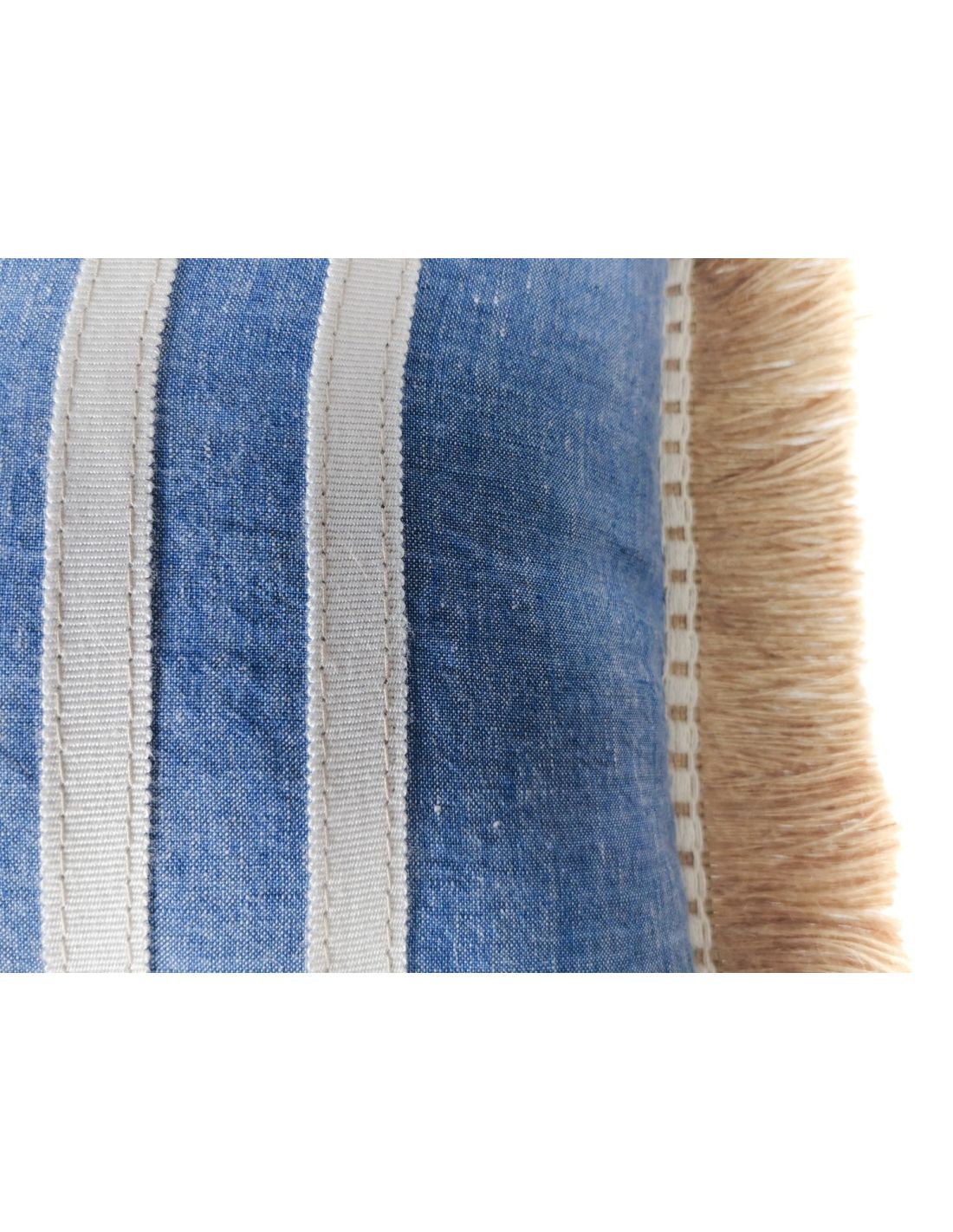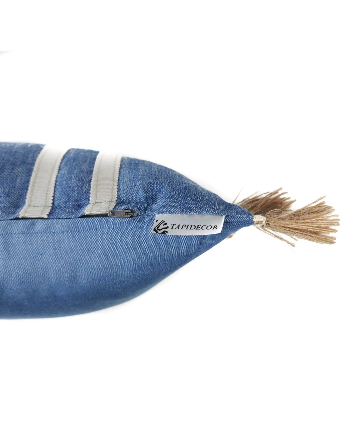 Cojín 60X40, relleno Premium efecto pluma incluido, Azul vaquero flecos lateral y centra, Colección Azur Sense