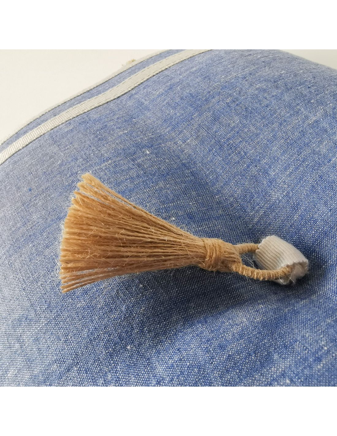 Cojín azul borla-fleco rafia con relleno premium 60X40