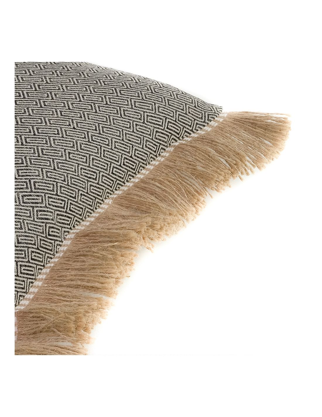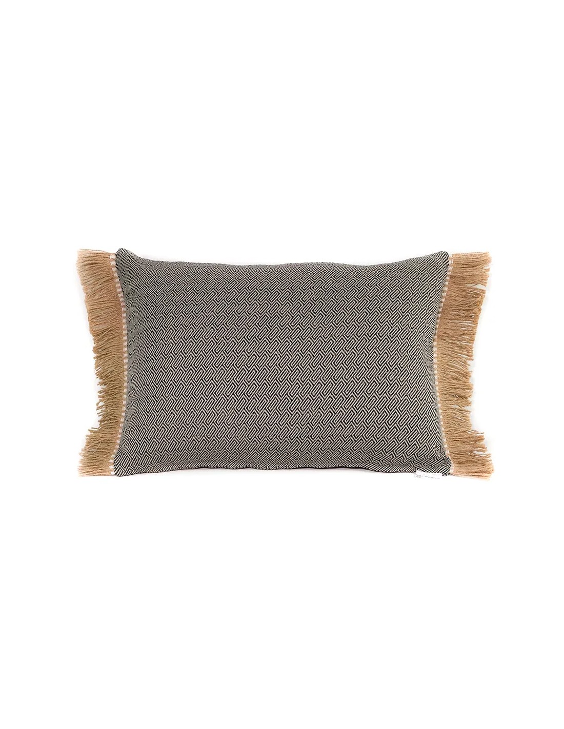 Cojín geométrico gris negro fleco rafia con relleno premium 60x40