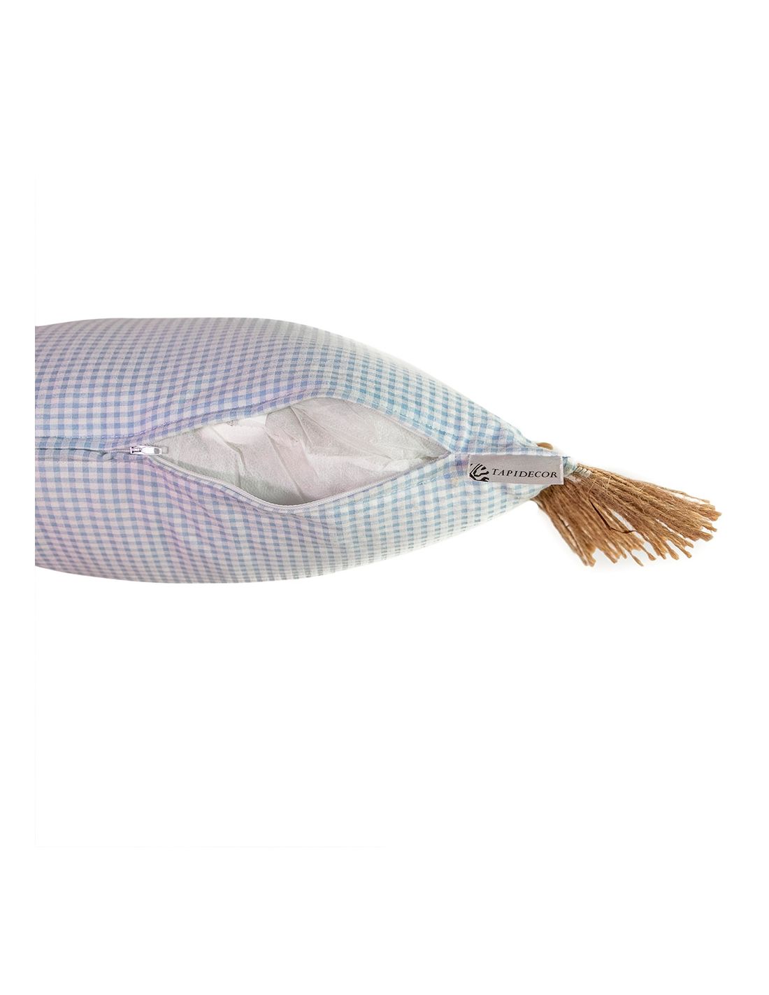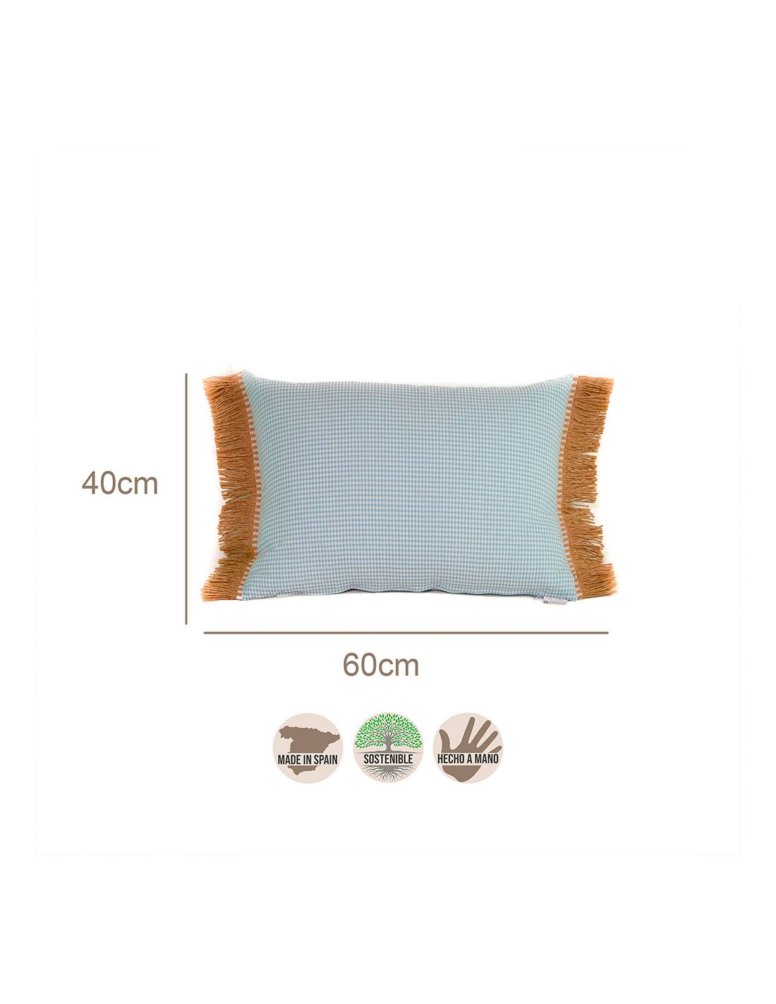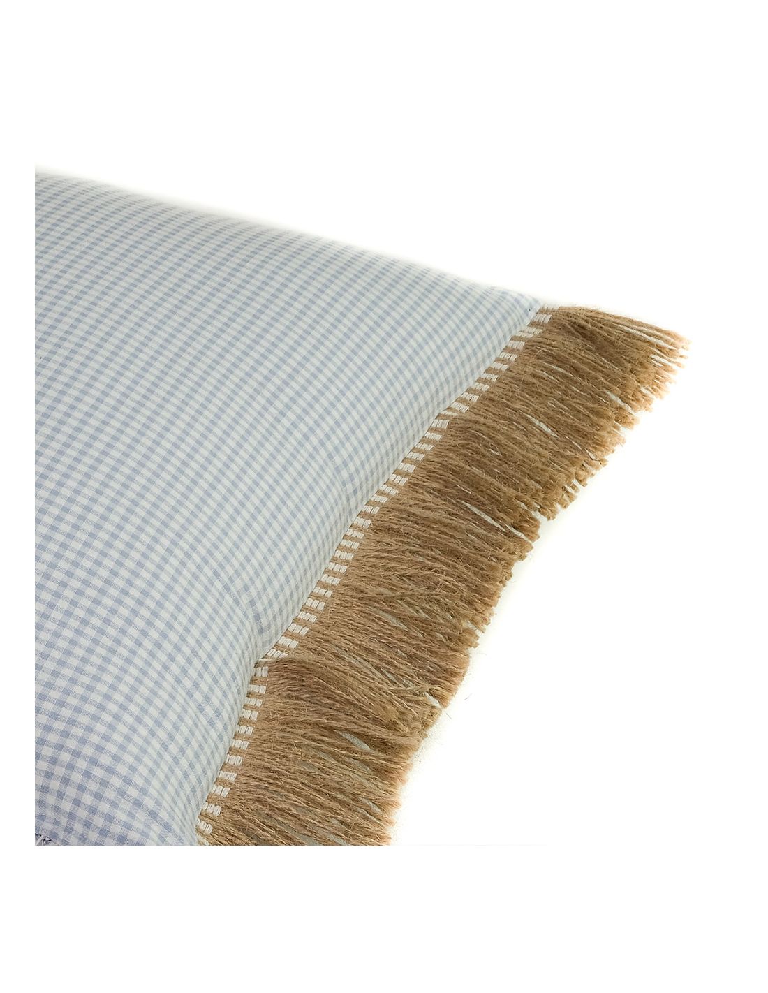 Cojín vichy azul blanco fleco rafia con relleno premium 60x40
