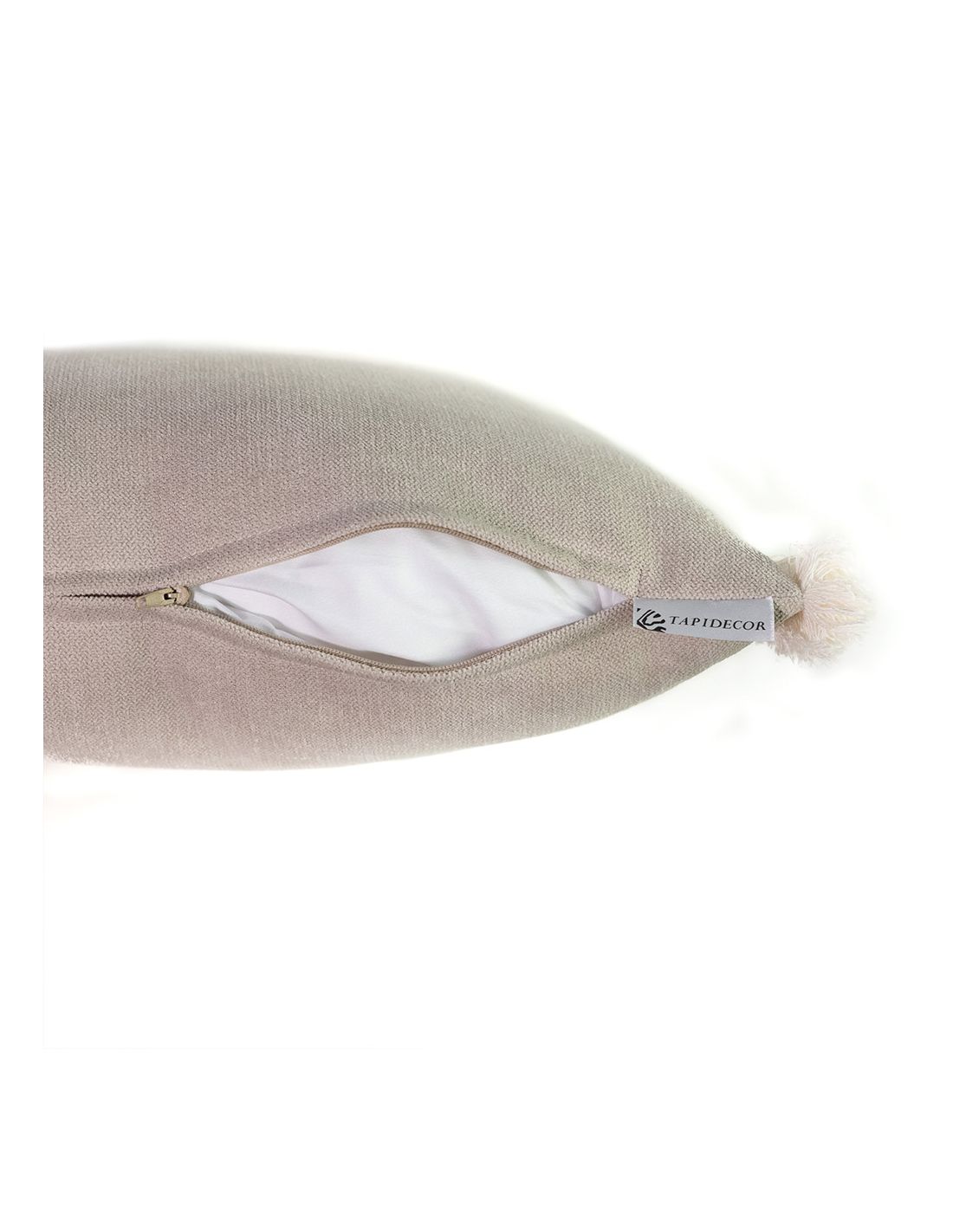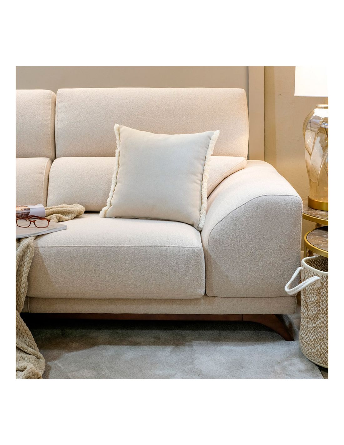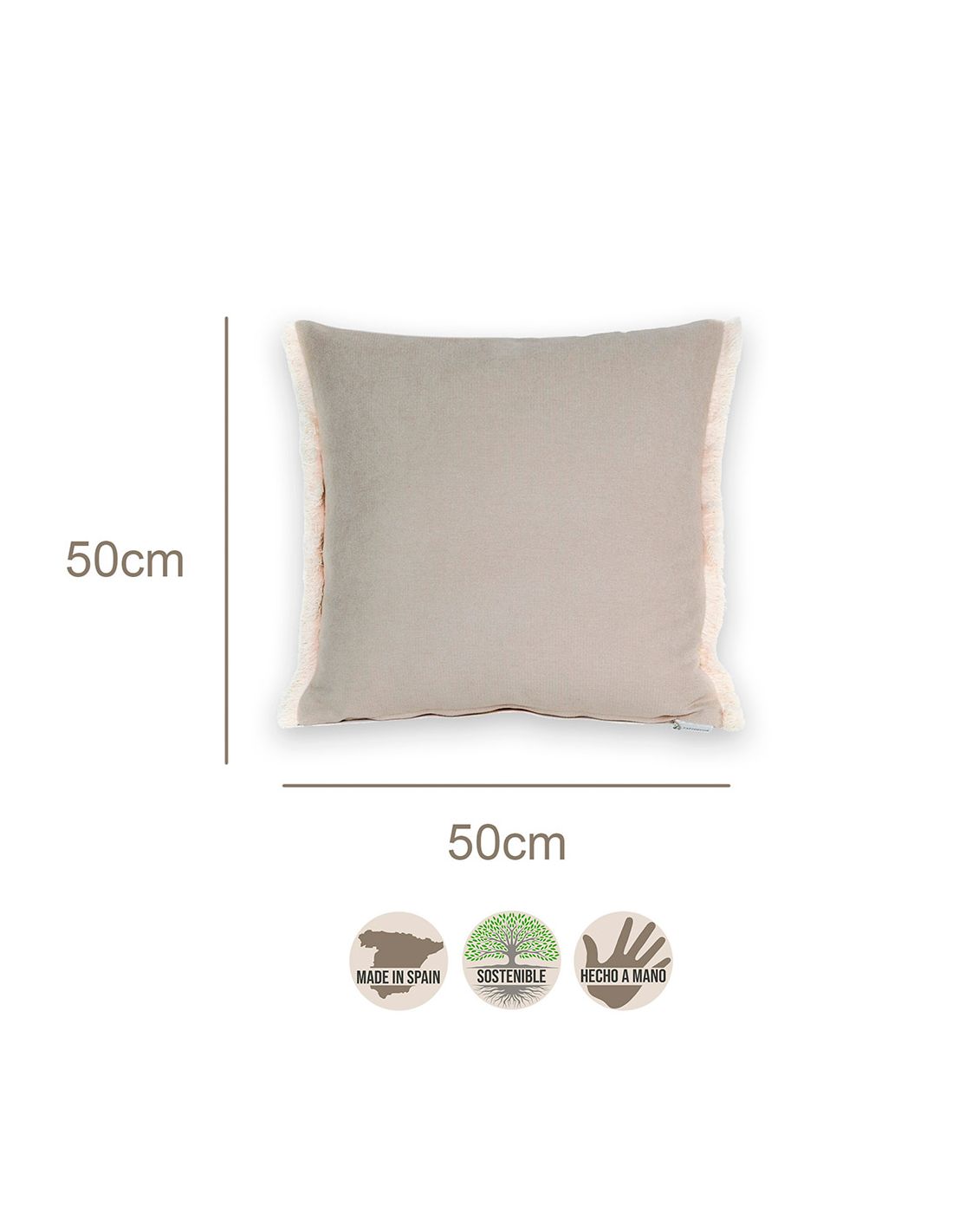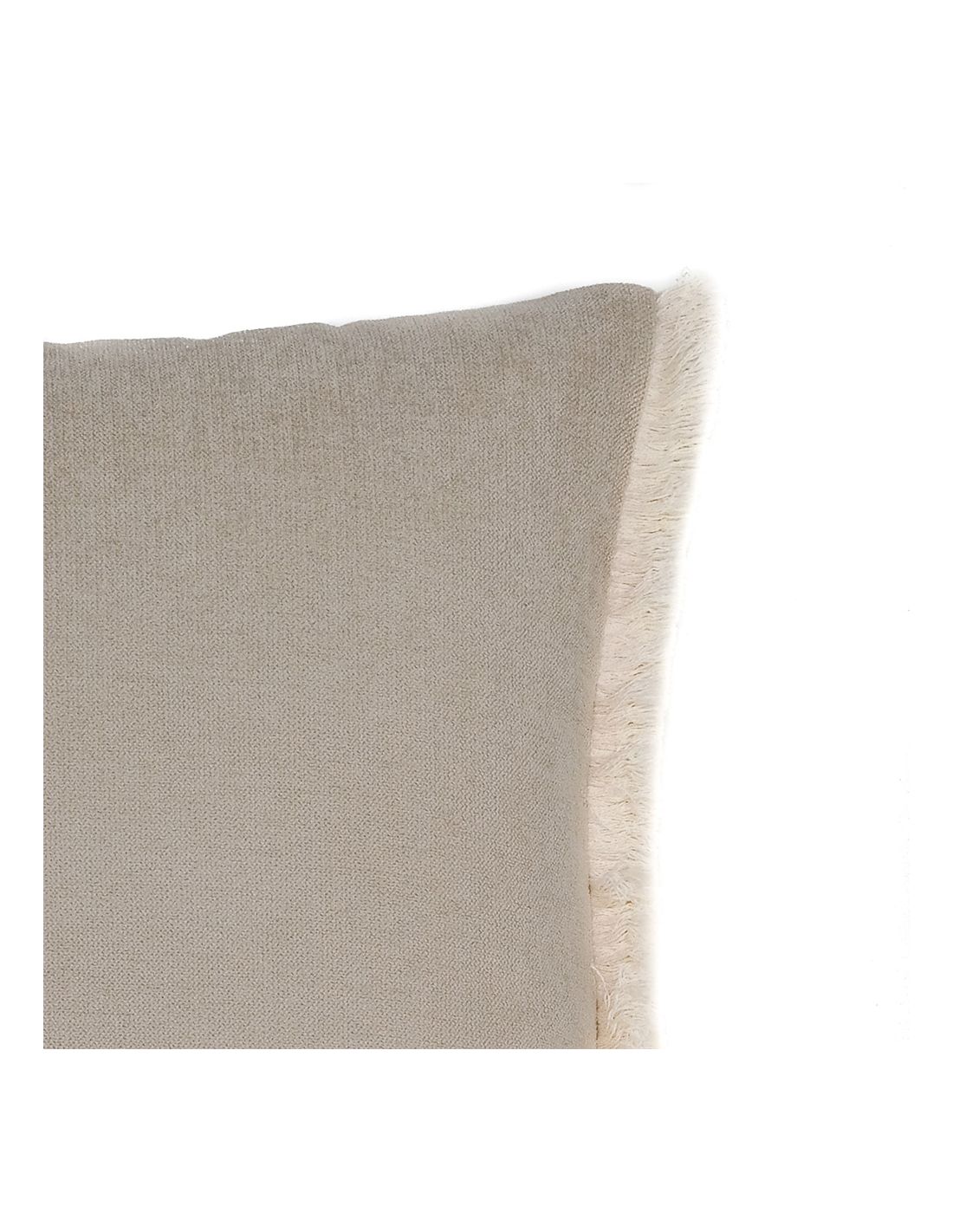 Cojín liso arena fleco blanco con relleno premium 50x50