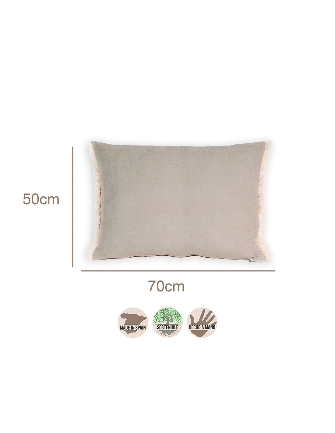 Cojín liso arena fleco blanco con relleno premium 70x50