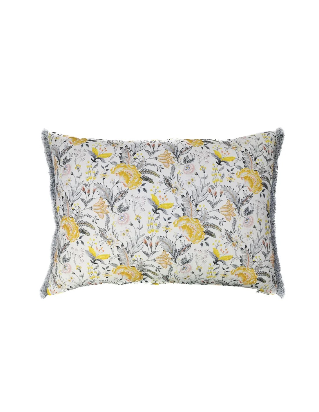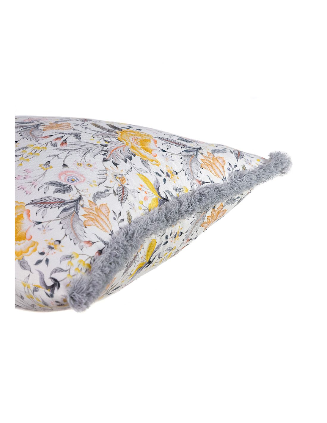 Cojín floral amarillo-gris fleco gris con relleno premium 70x50