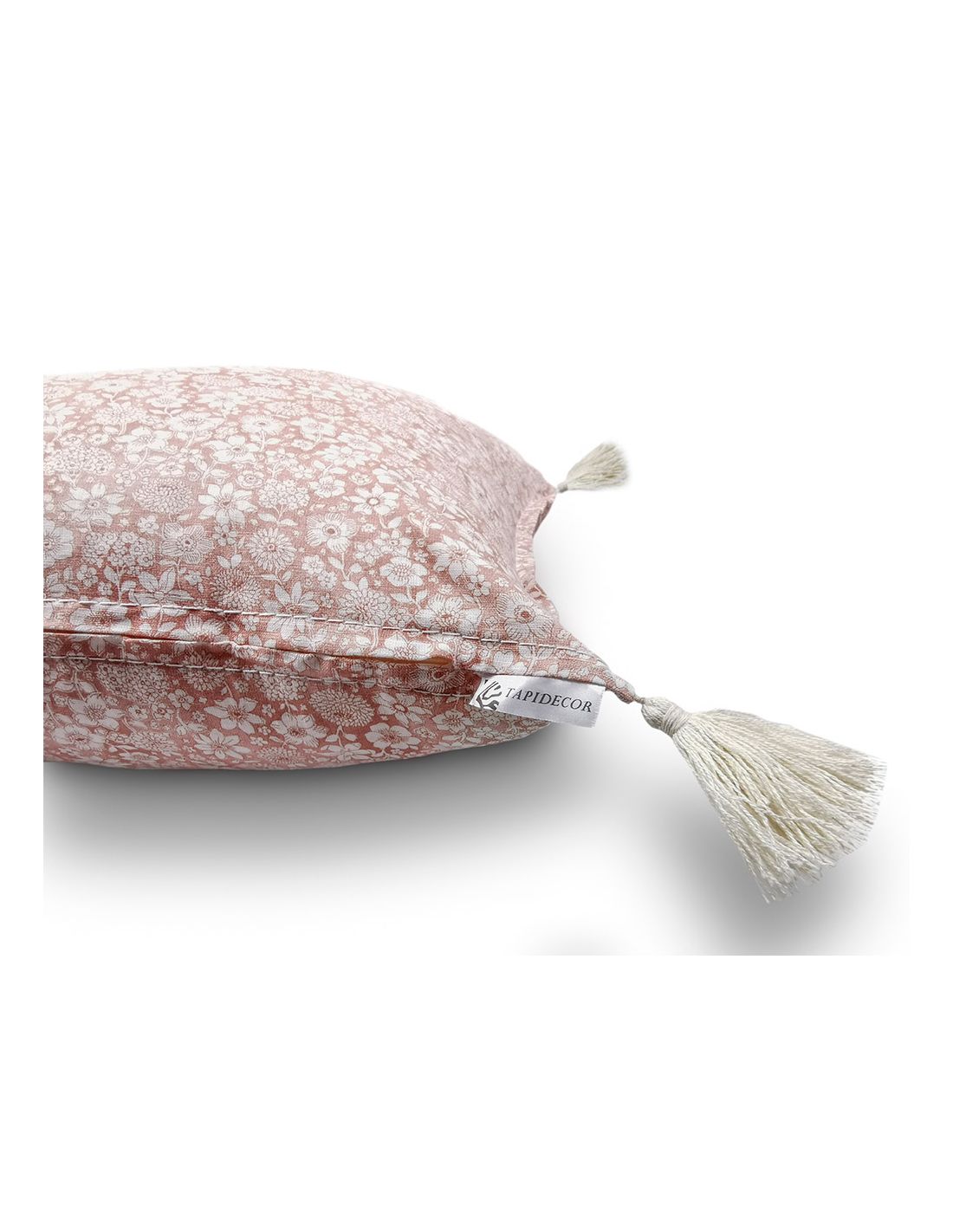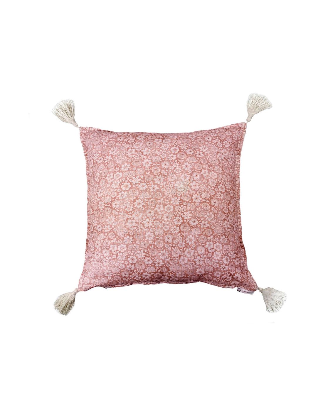 Cojín con estampado de flores en tonos rosa, ideal para darle un toque de calidez y estilo a tu hogar.