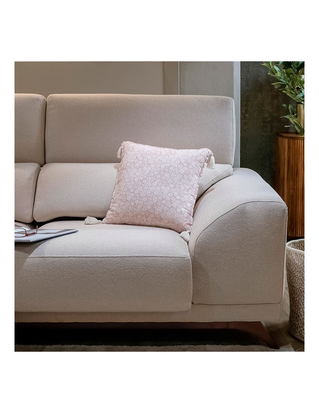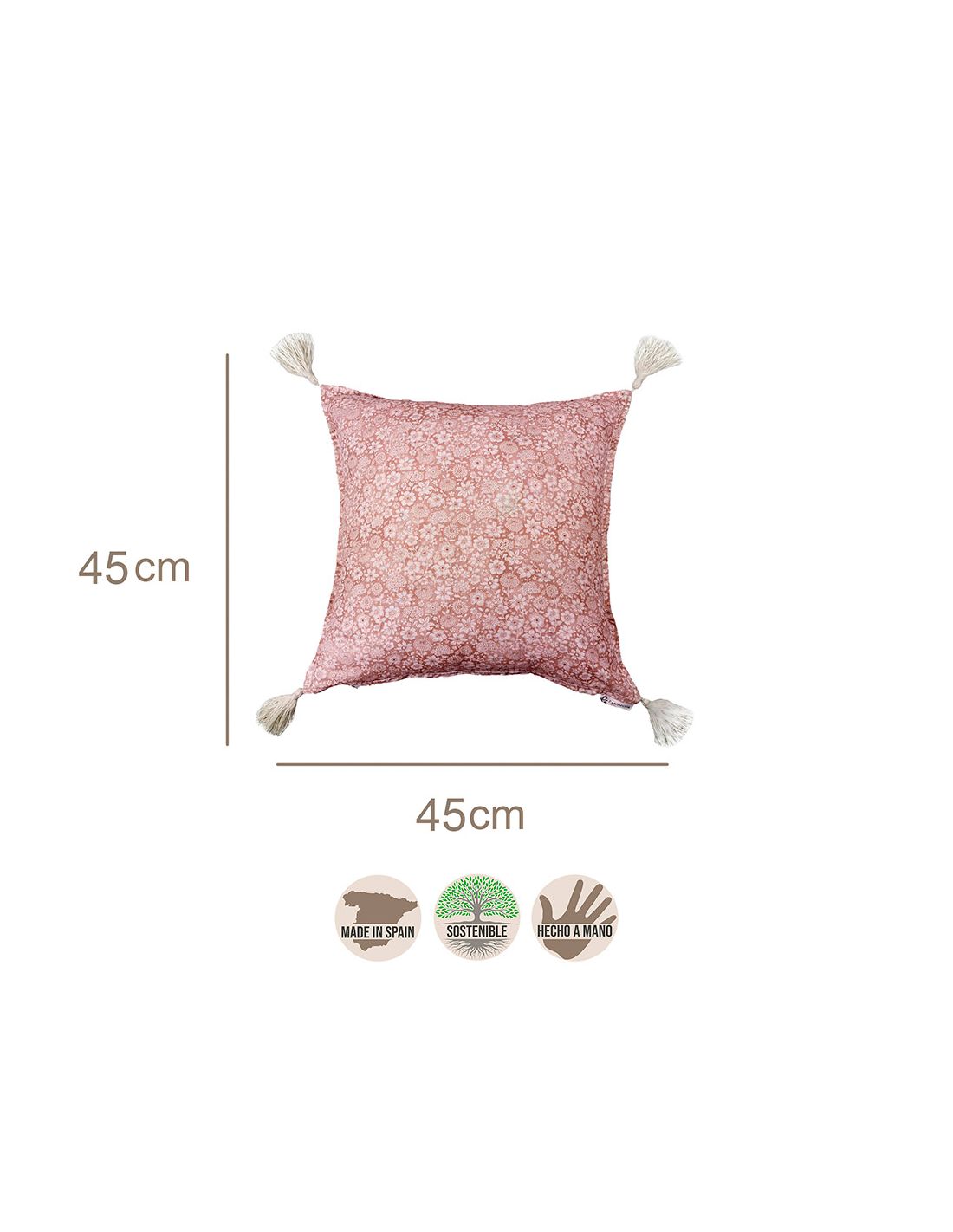 Cojín decorativo rosa nude borlas algodón con relleno premium 45x45
