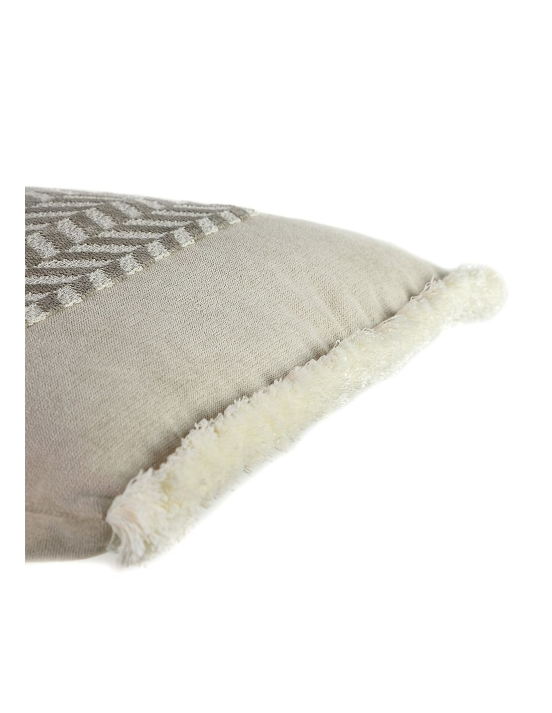 Cojín gris centro espigas fleco blanco con relleno premium 50x50