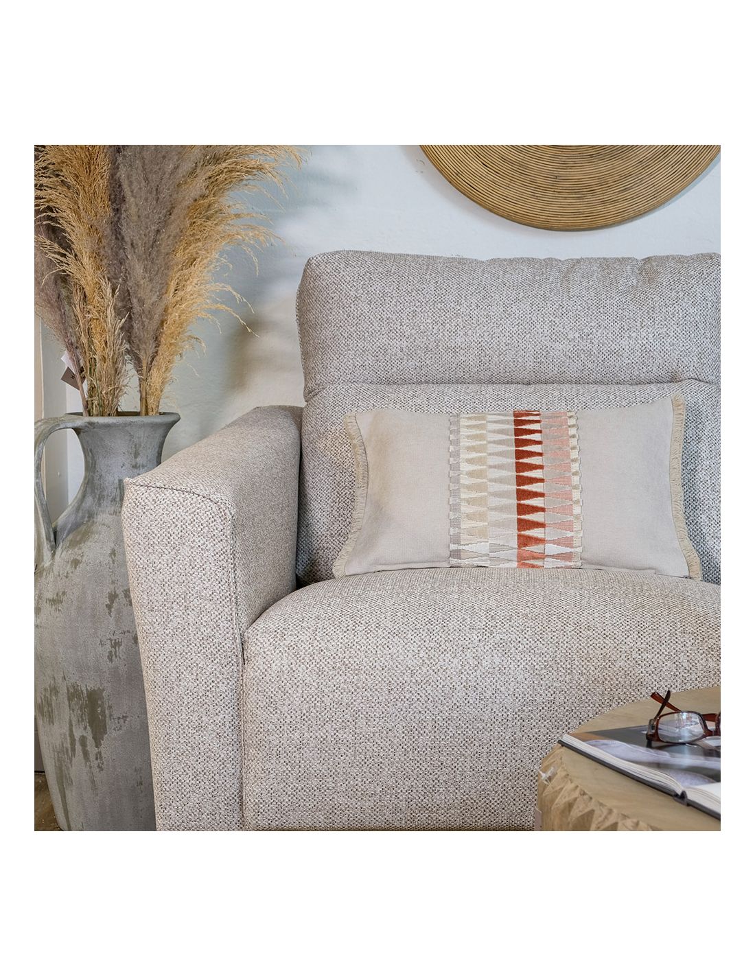 Cojín banda geométrica pastel fleco arena con relleno premium 60x40