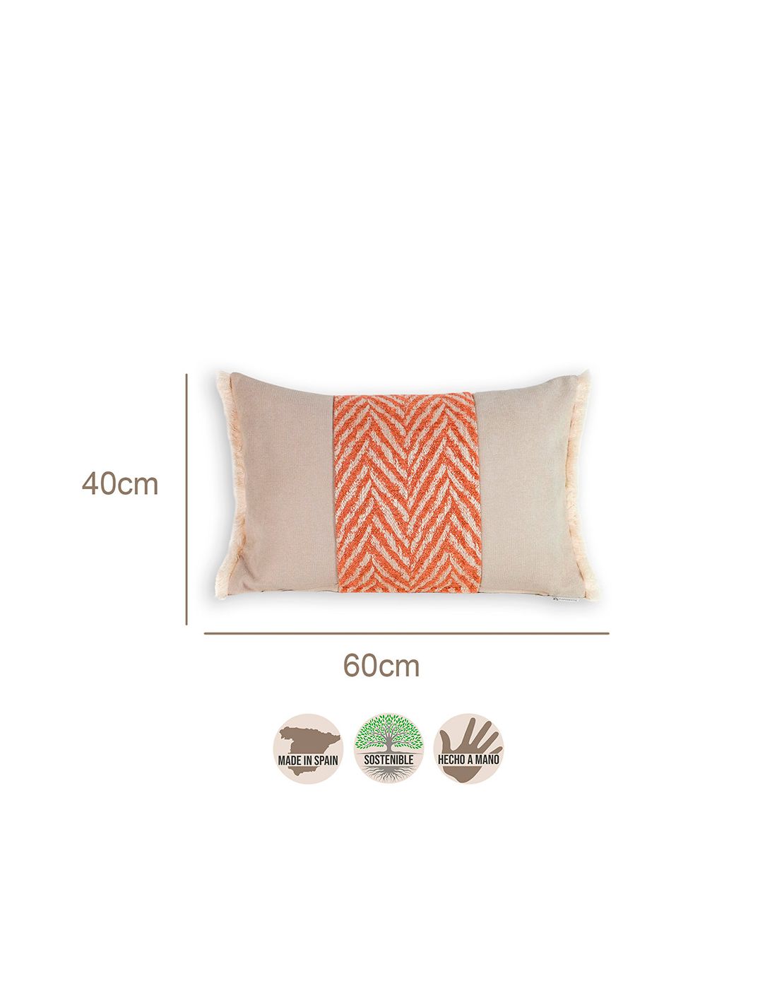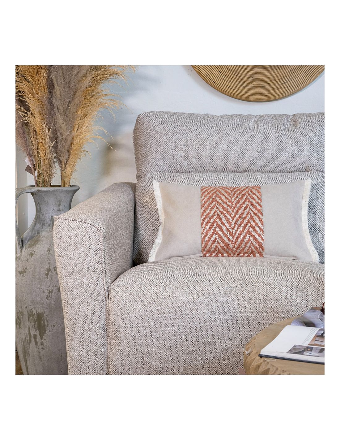 Añade un toque cálido y sofisticado a tu hogar con este cojín que presenta una banda decorativa en diseño de espiga en tono caldera. Su estilo único y elegante lo convierte en una pieza ideal para resaltar cualquier espacio de tu casa, ya sea el salón, el dormitorio o una zona de lectura. Confeccionado con telas de calidad y suaves al tacto, garantiza durabilidad y confort, aportando un toque de distinción a tu decoración.