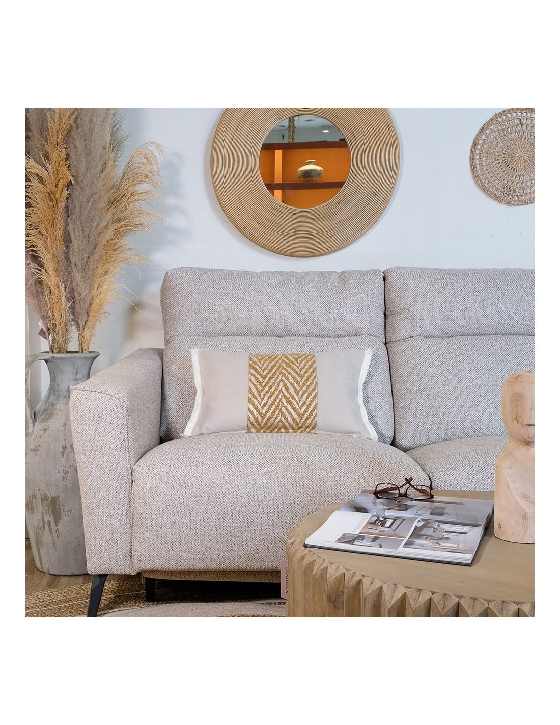Dale un toque cálido y sofisticado a tu hogar con este cojín que presenta una banda decorativa en diseño de espiga en tono ocre. Su estilo único y elegante lo convierte en una pieza ideal para resaltar cualquier espacio de tu casa, ya sea el salón, el dormitorio o una zona de lectura. Confeccionado con telas de calidad y suaves al tacto, garantiza durabilidad y confort, aportando un toque de distinción a tu decoración.