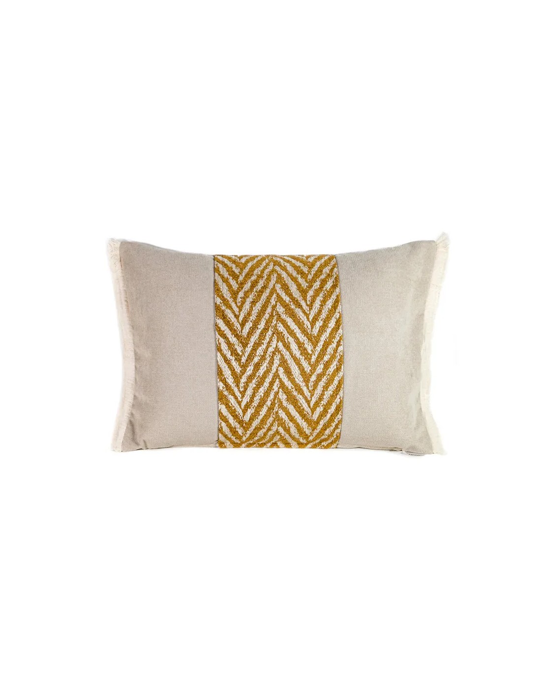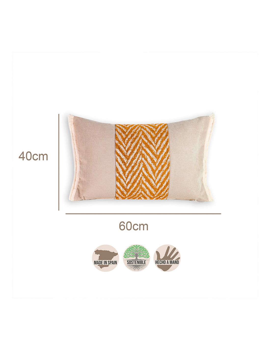 Cojín banda espigas ocre fleco blanco con relleno premium 60x40