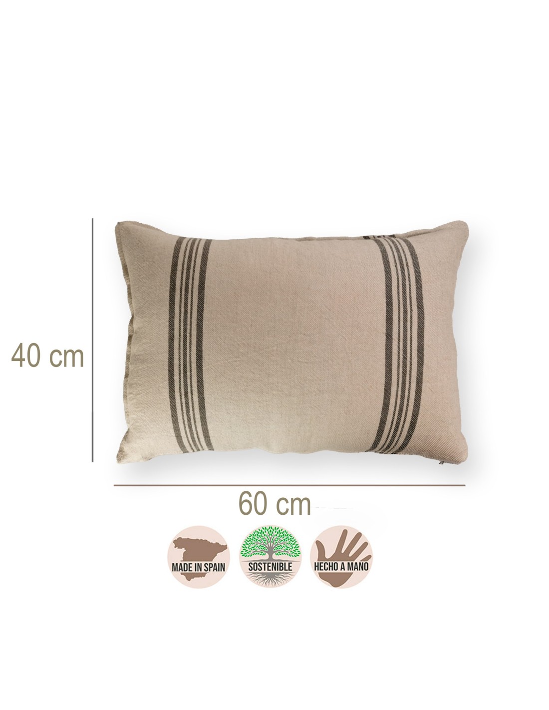 Cojín para cama y sofá arena rayas gris 70x50 Relleno premium incluido
