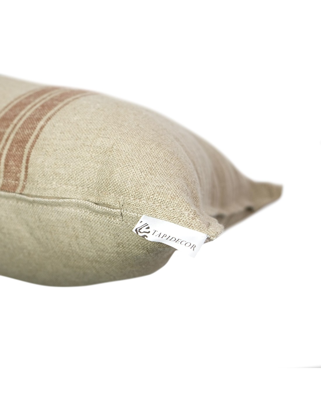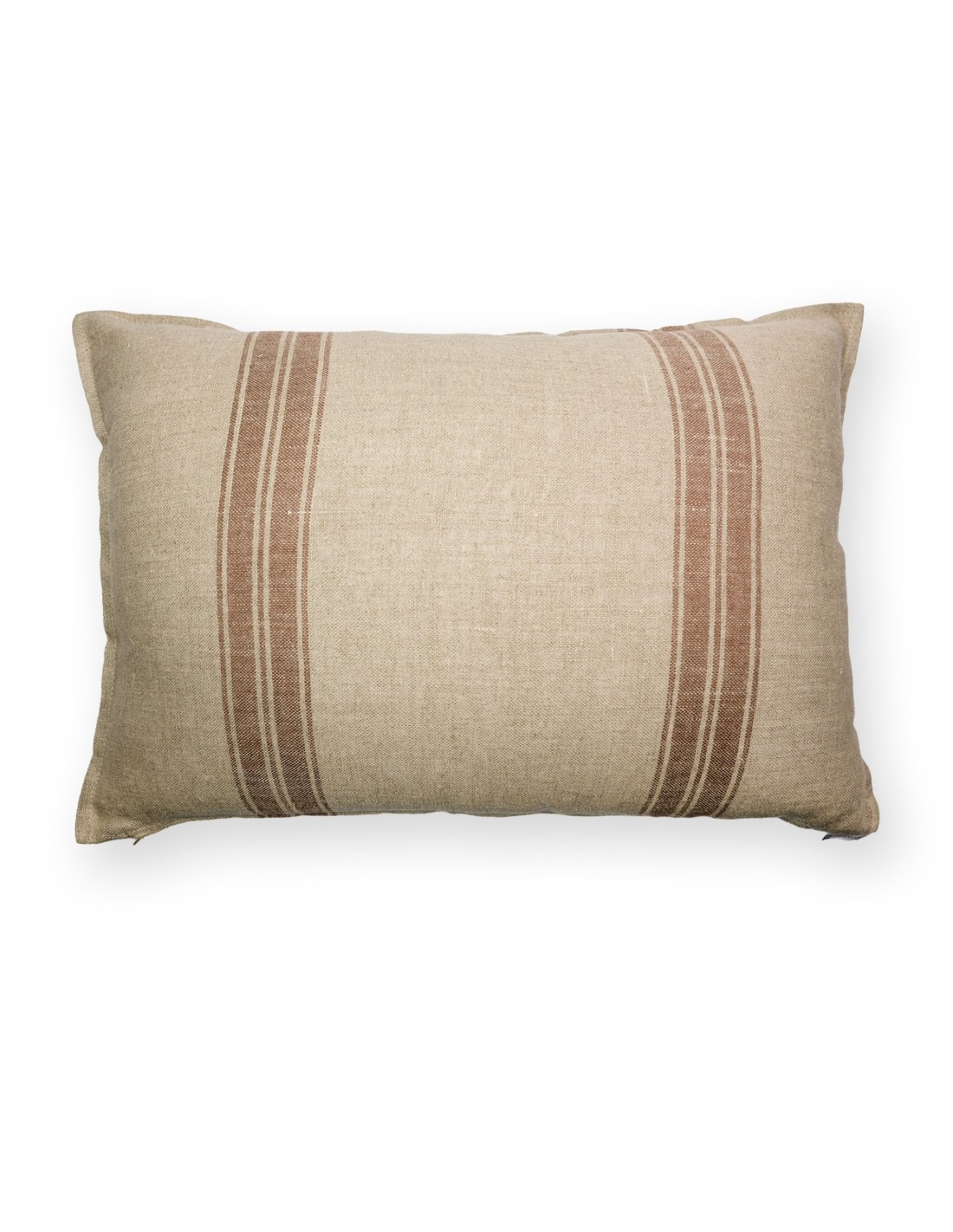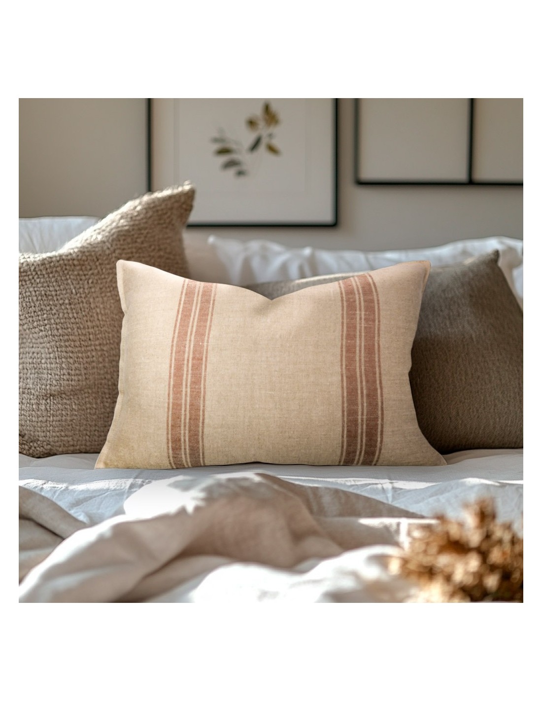 Cojín decorativo de 70x50 cm en tono gris con rayas granate y relleno Premium incluido. Un diseño sobrio con contraste elegante