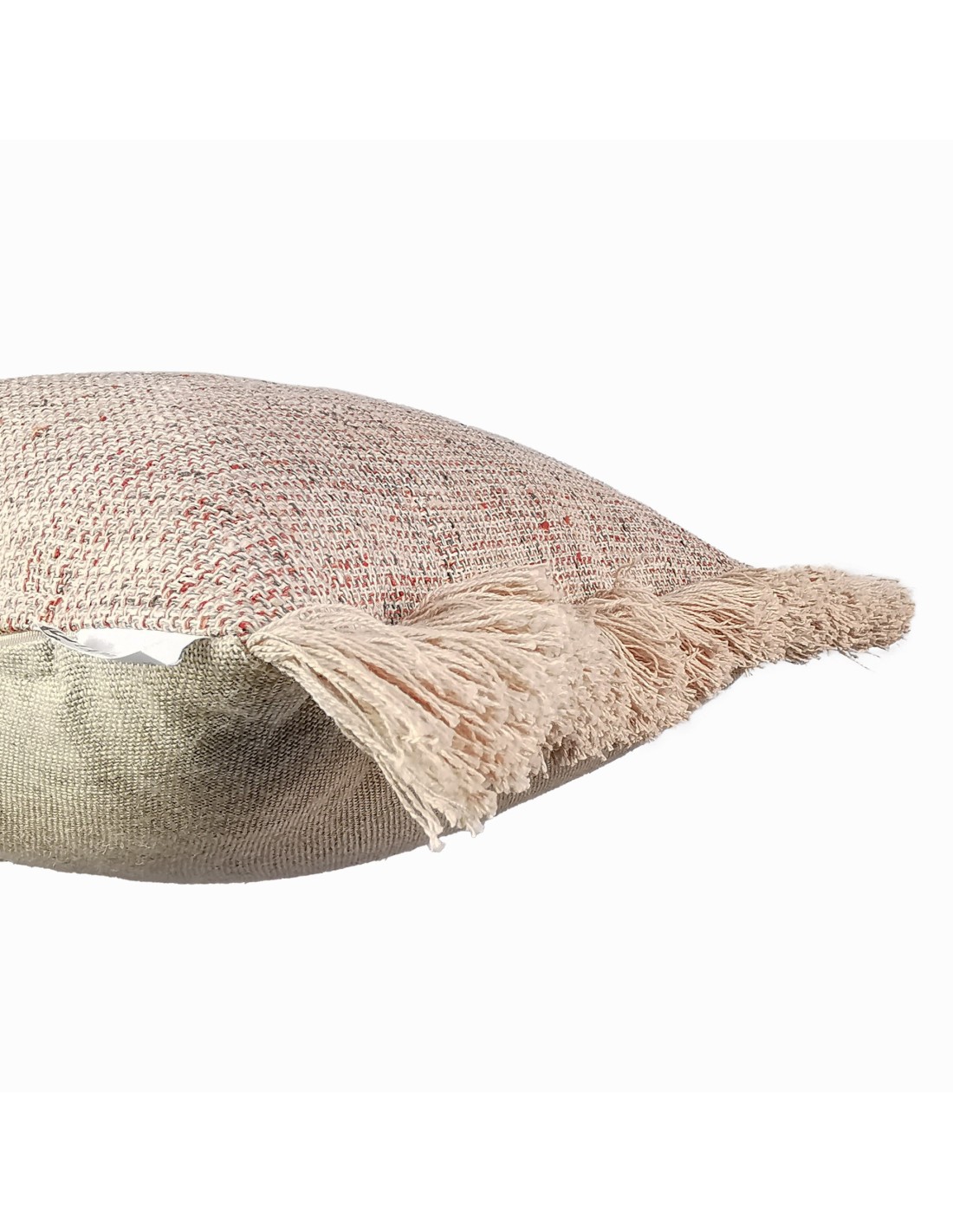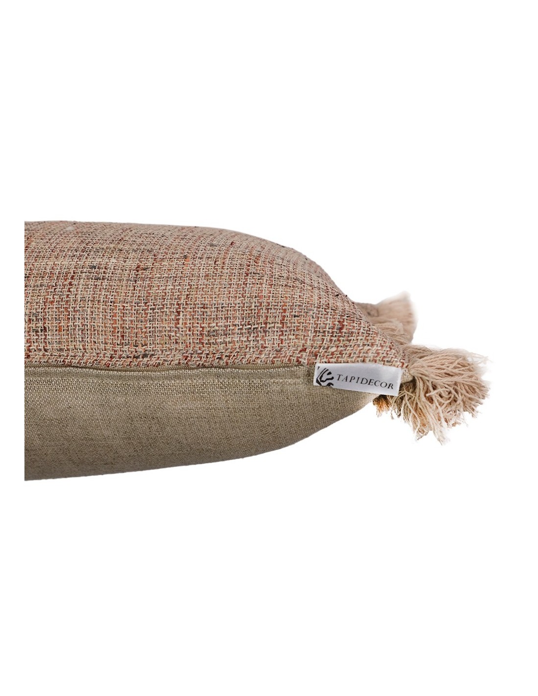 Cojín granate lino jaspe fleco beige 60X40 Relleno premium incluido