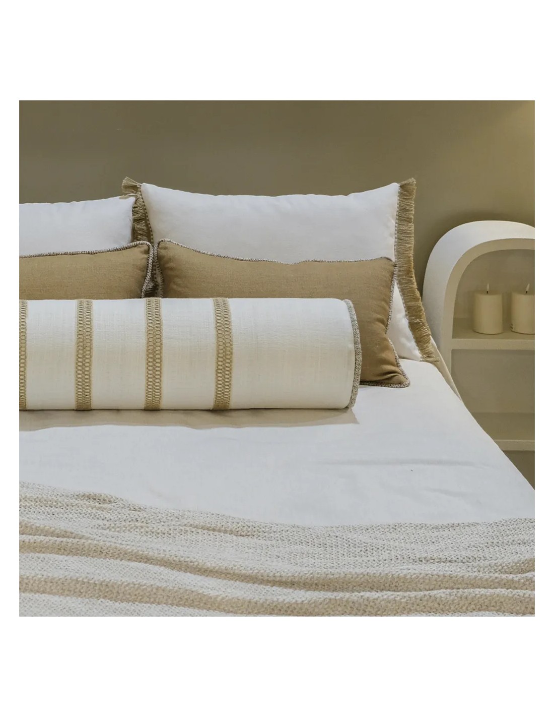 Cojín cilindro redondo blanco rayas camel con relleno premium 70X20