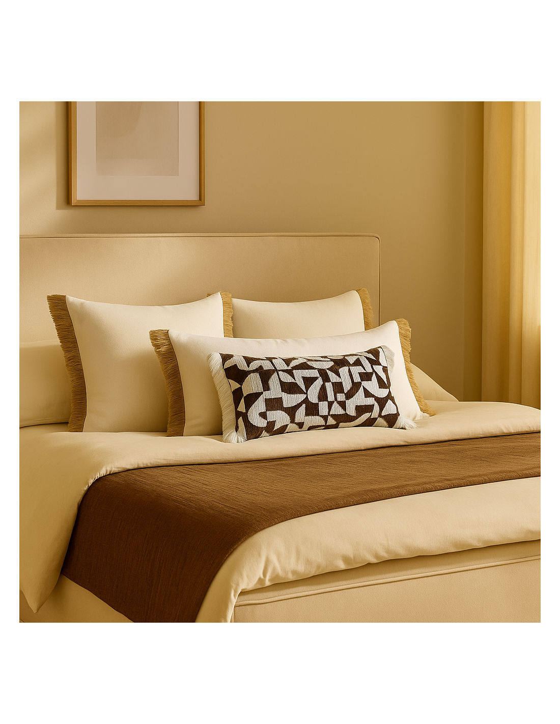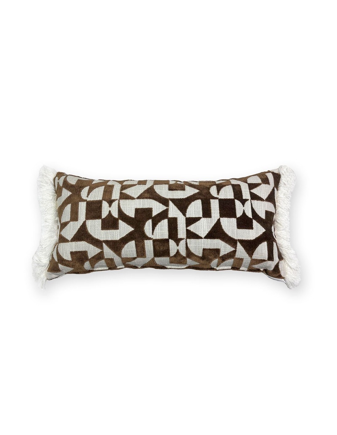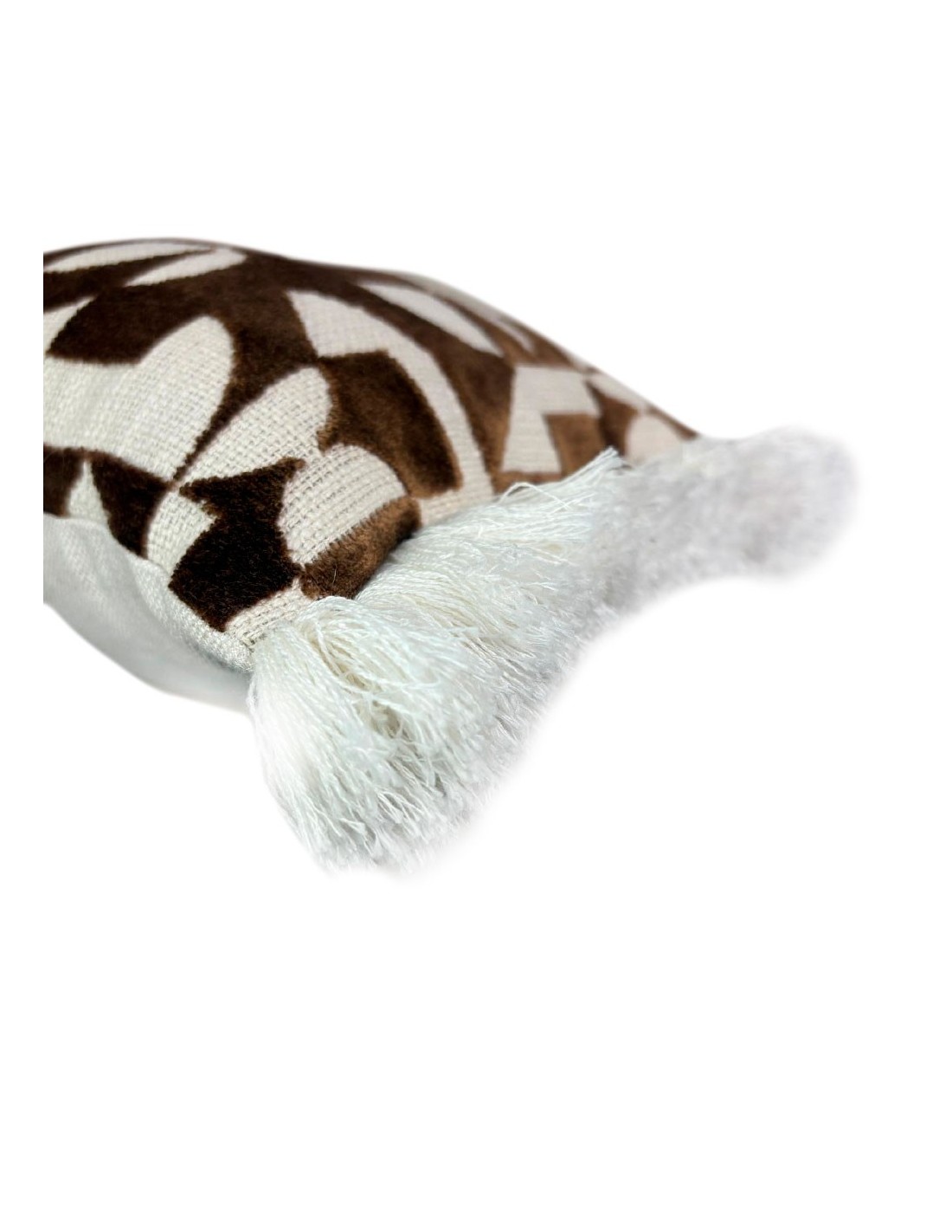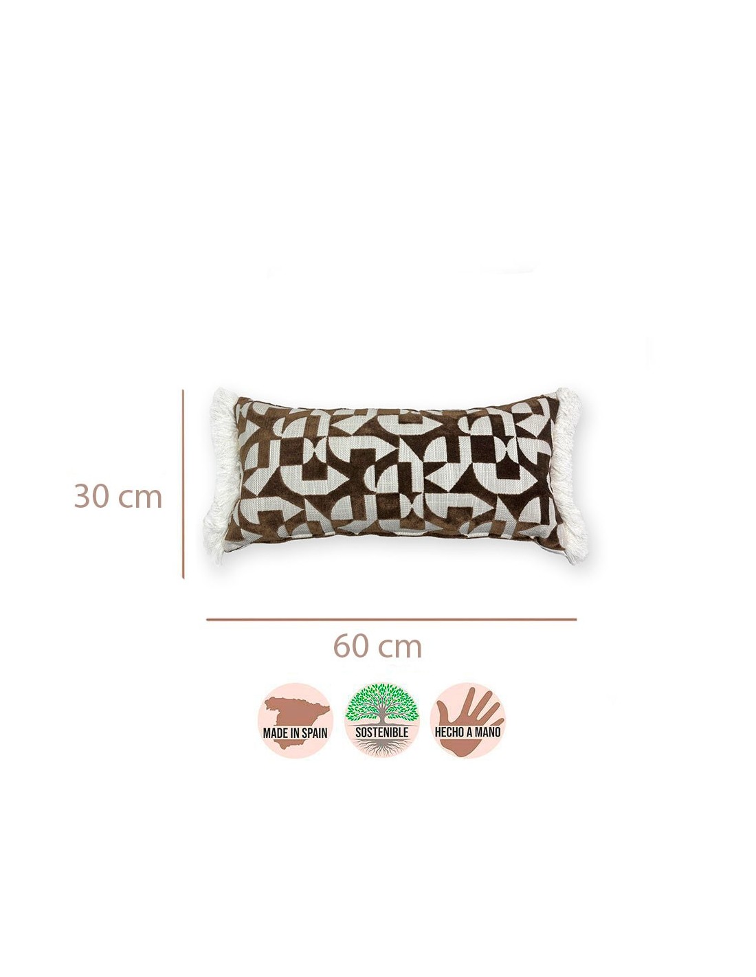 Cojín geométrico marrón fleco blanco con relleno premium 60x30