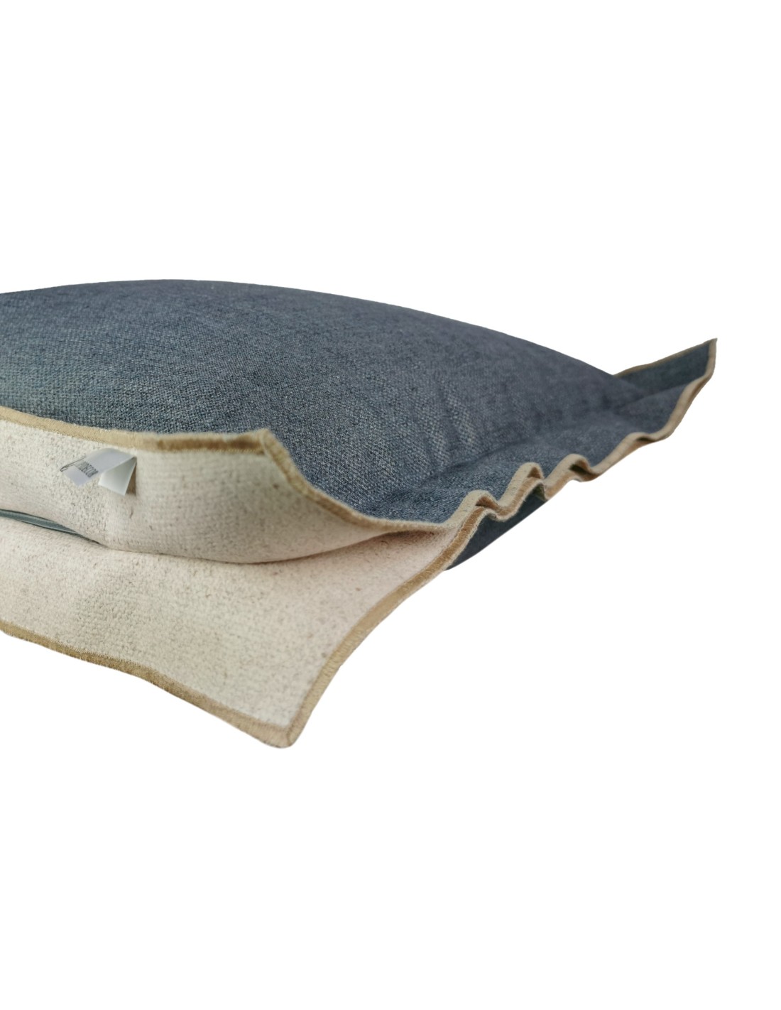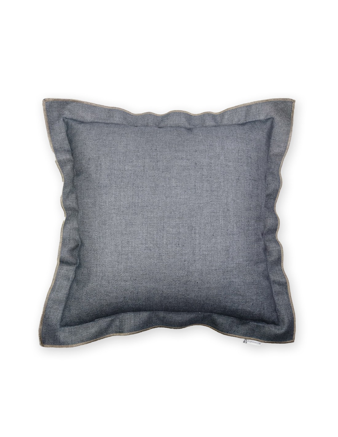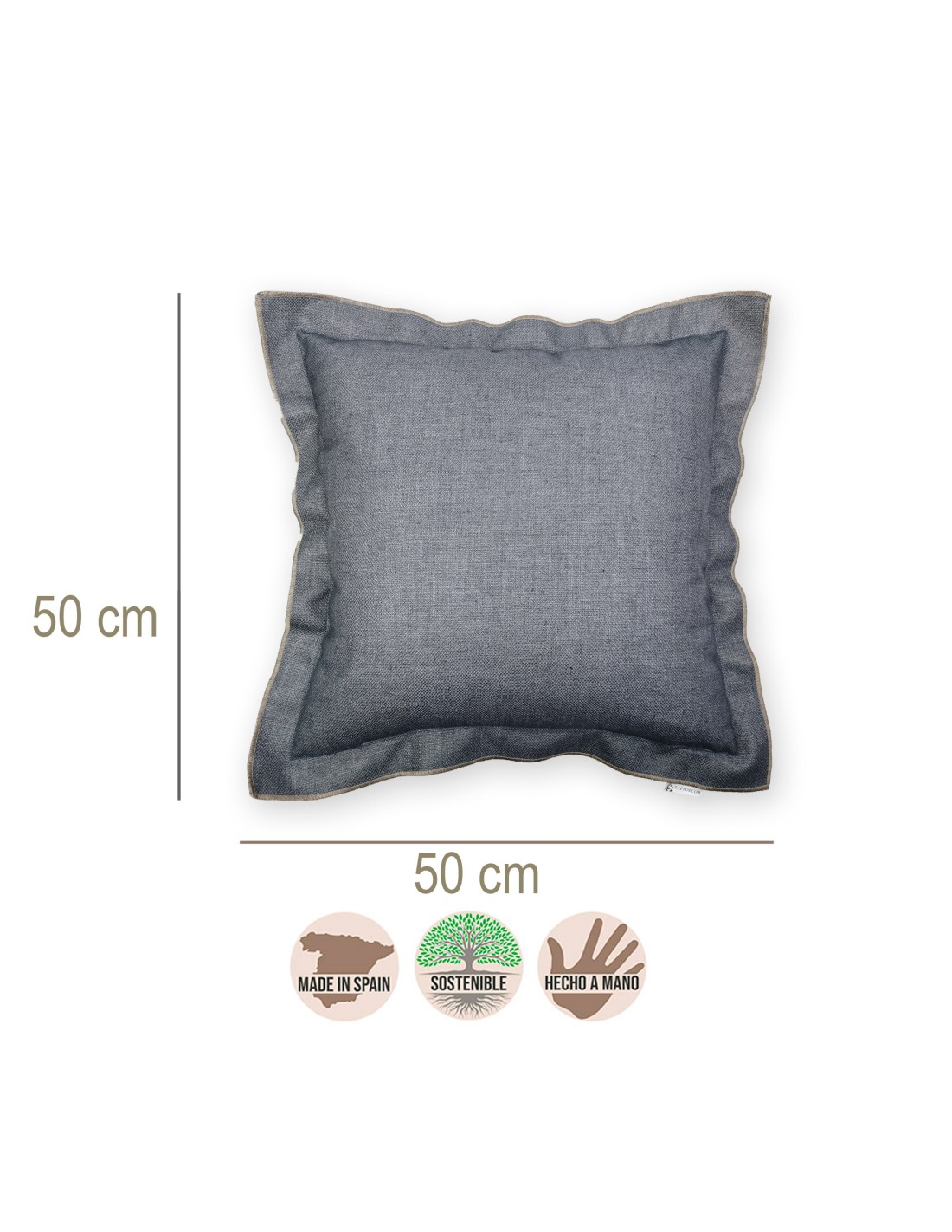 Cojín azul liso pestaña doble 4cm bordada 50X50 Relleno premium incluido