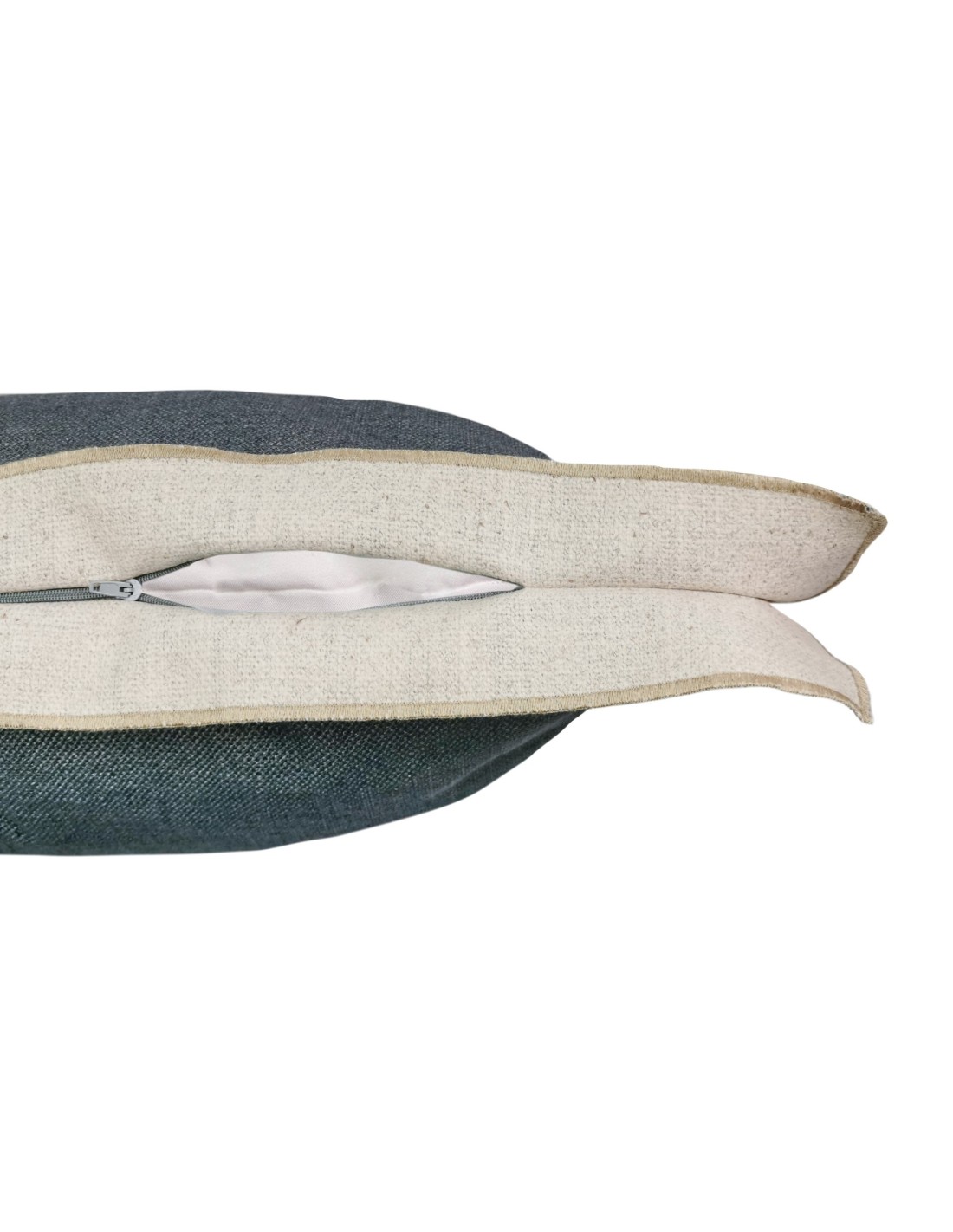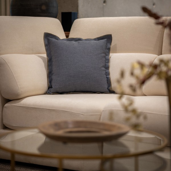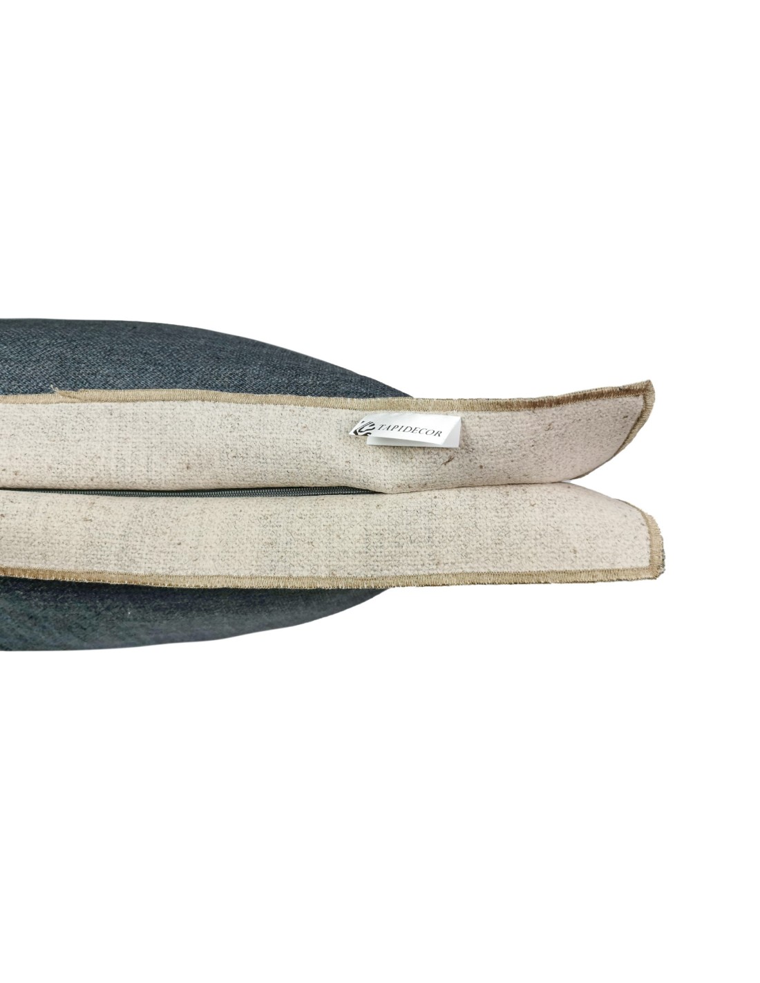 Cojín azul liso pestaña doble 4cm bordada 50X50 Relleno premium incluido