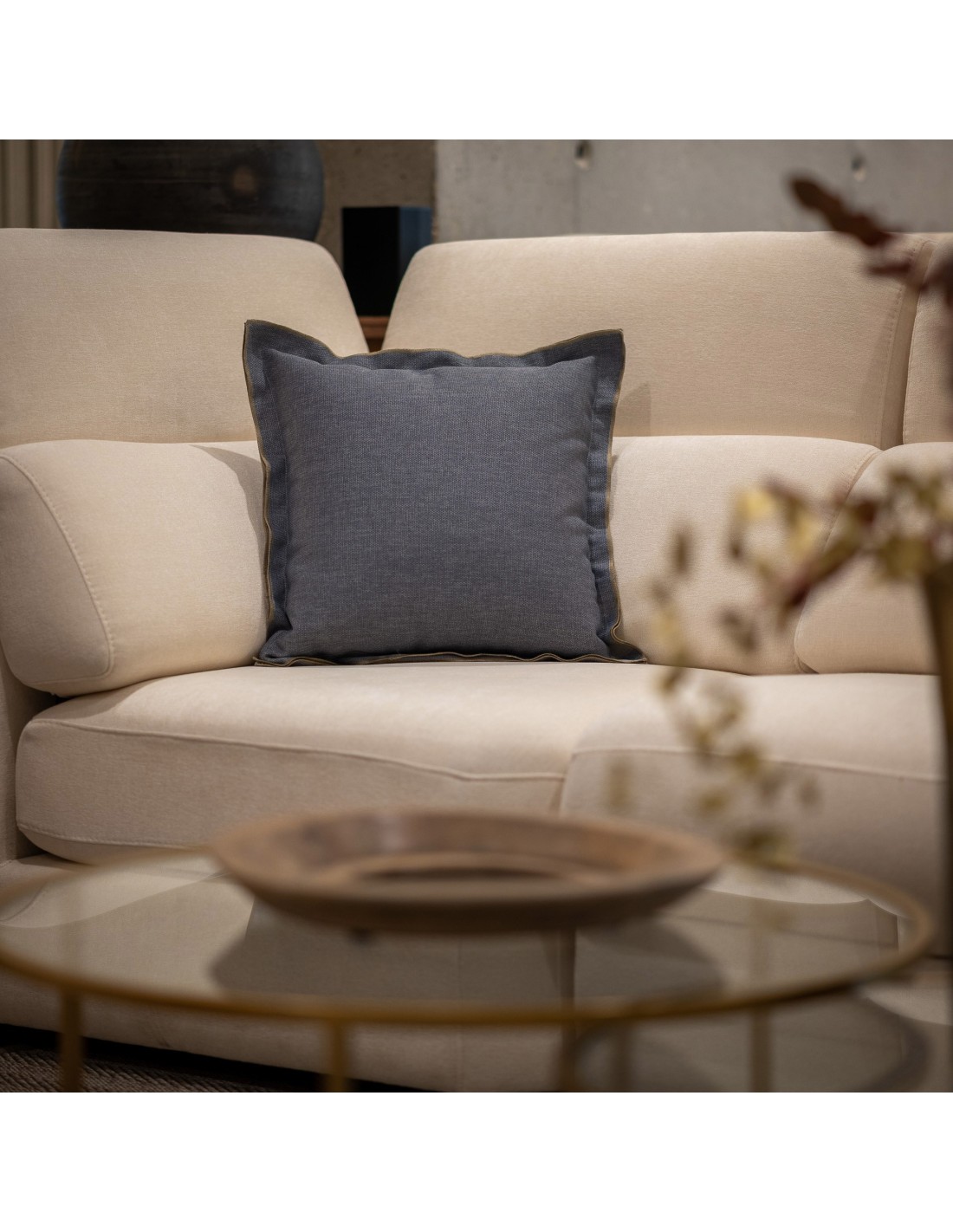 Cojín azul liso pestaña doble 4cm bordada marrón tostado 50X50 Relleno premium incluido