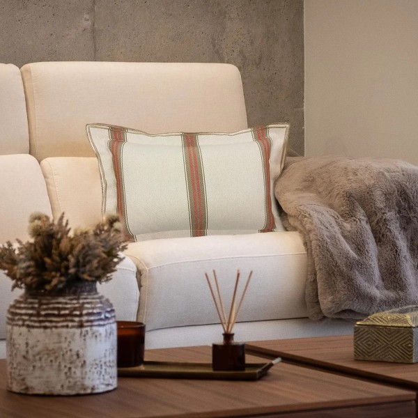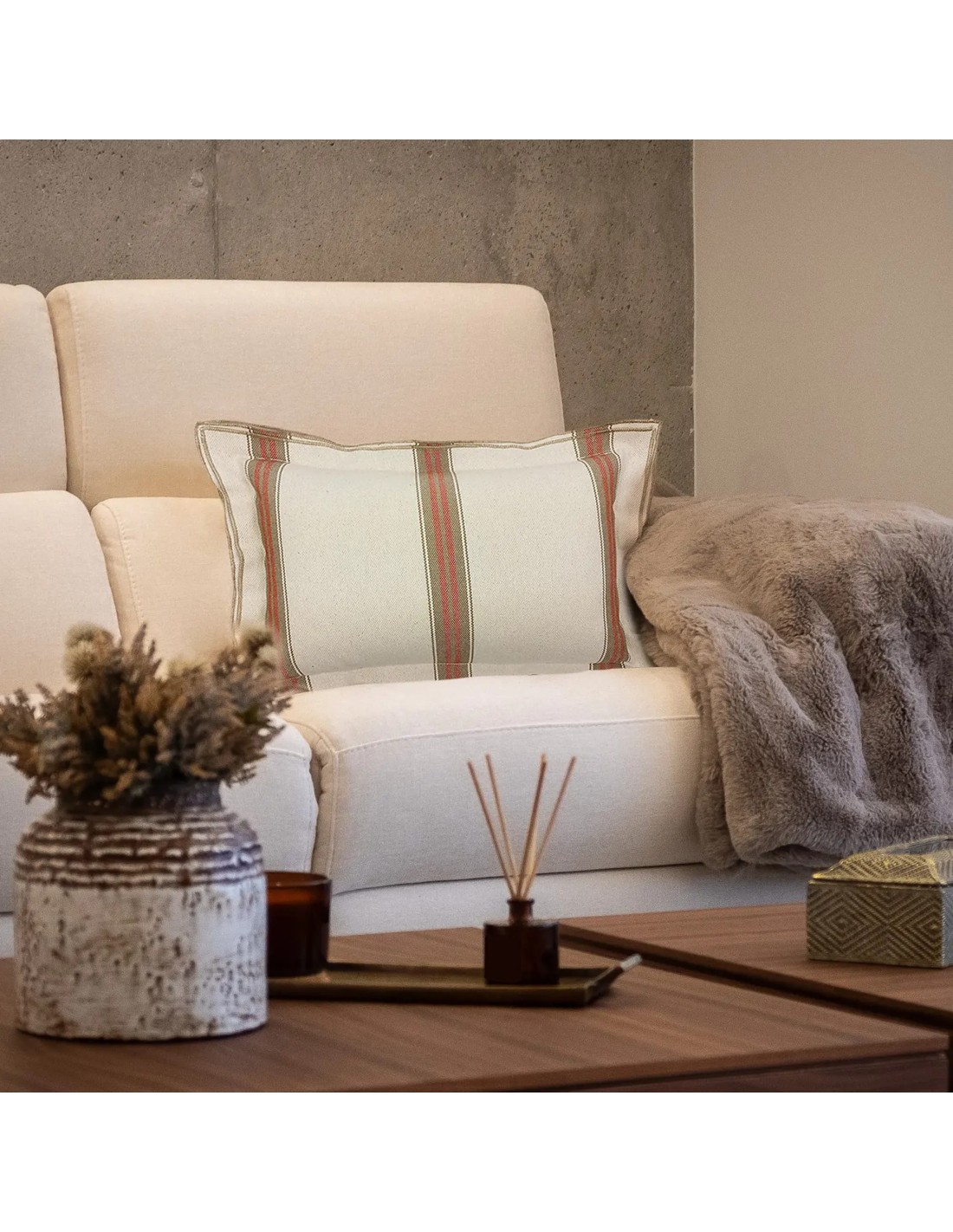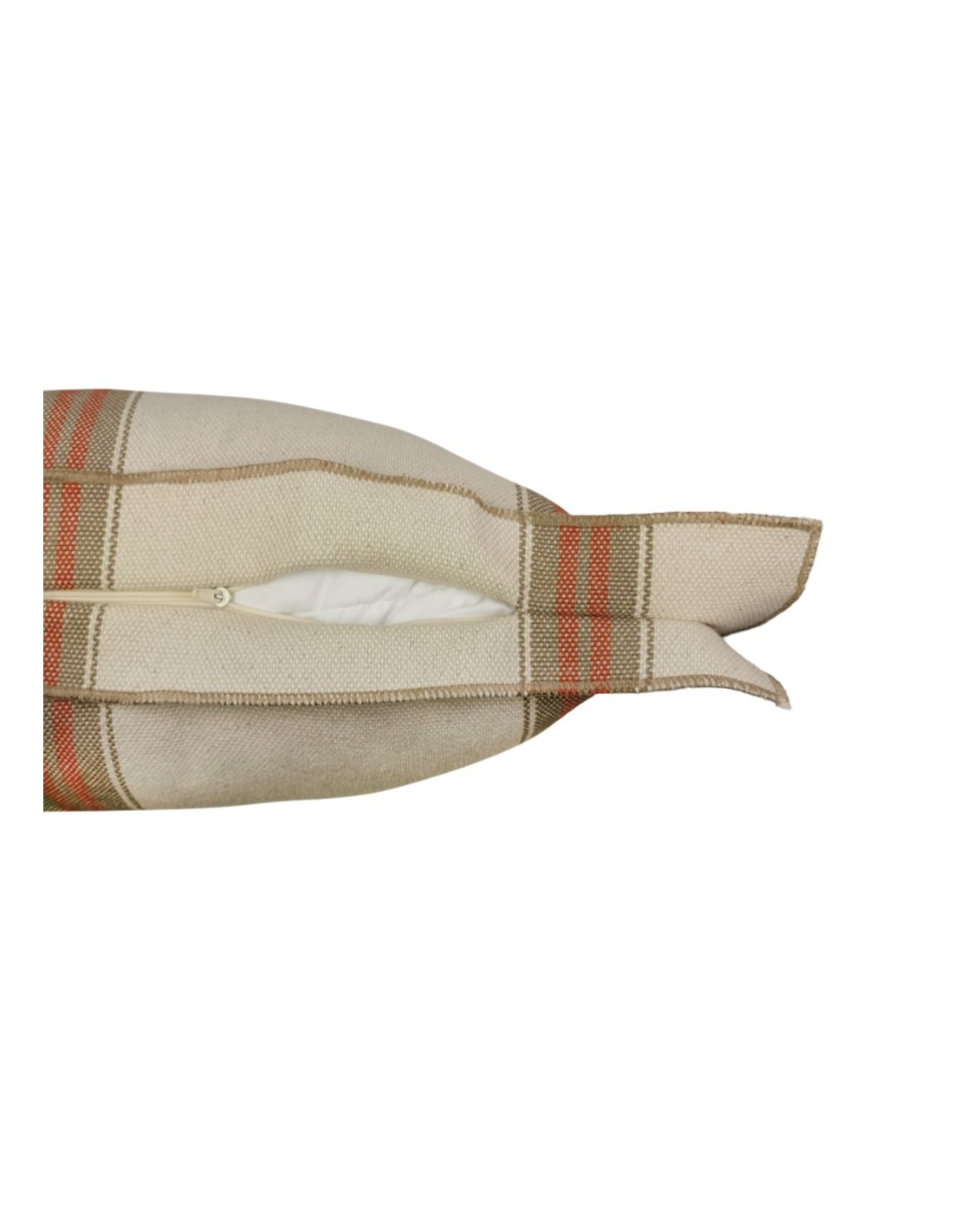 Cojín beige rayas naranja pestaña bordada con relleno premium 60X40
