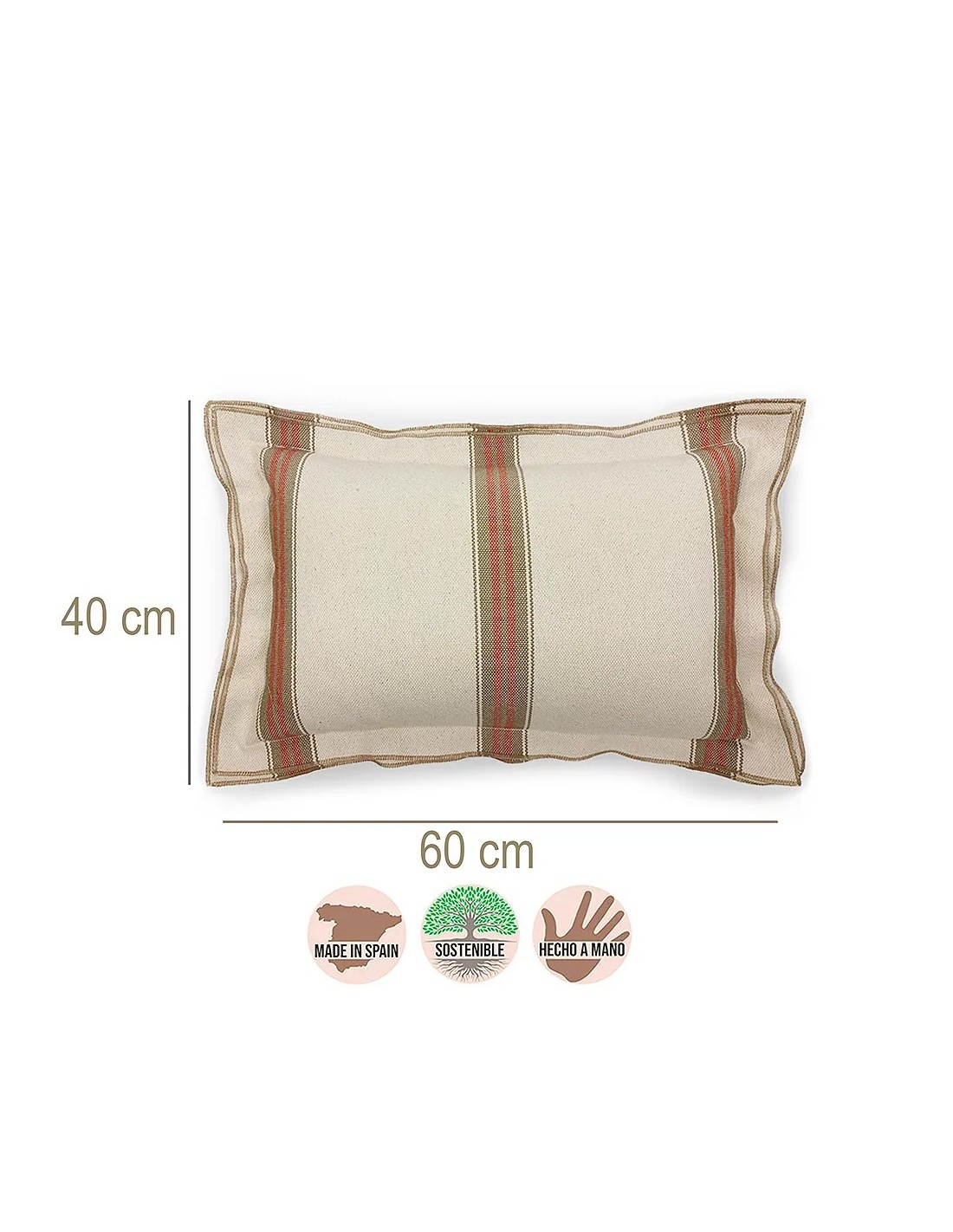 Cojín beige raya naranja pestaña doble 4 y 5cm bordada marrón café 60X40 Relleno premium incluido