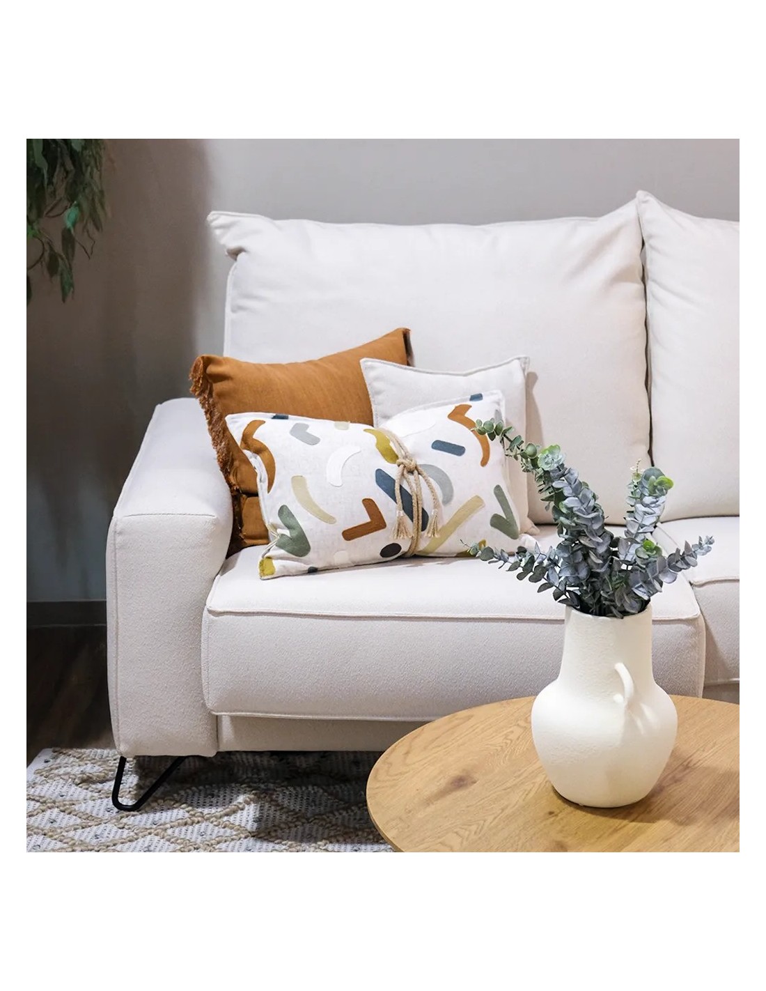 Cojín beige trazos bordados yute vertical 60X40 Relleno premium incluido