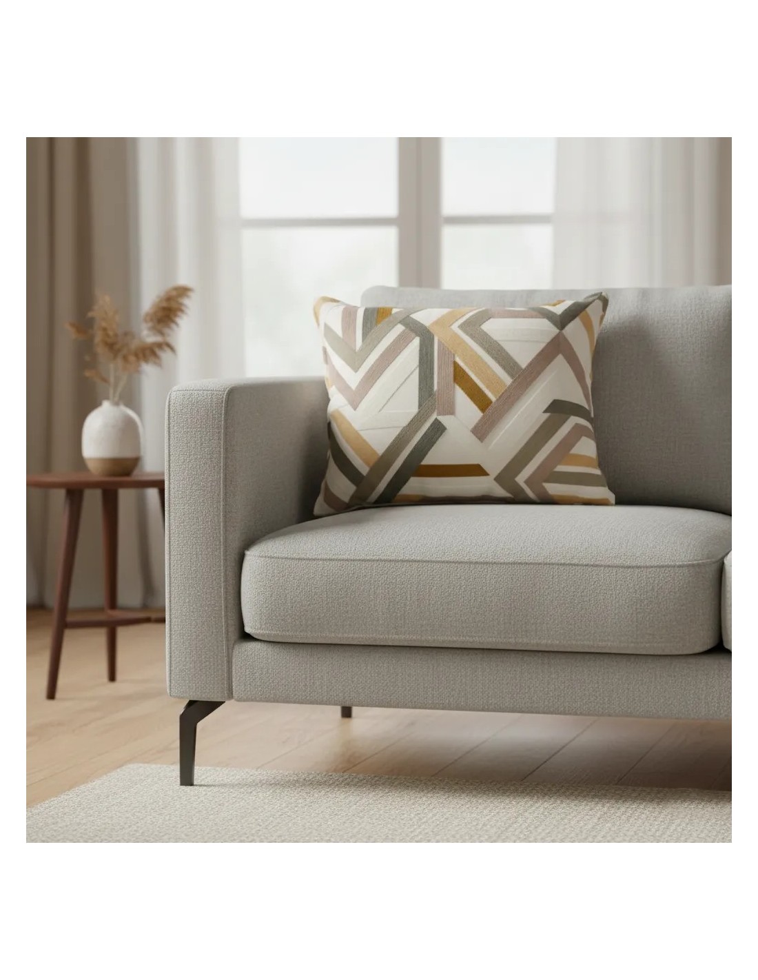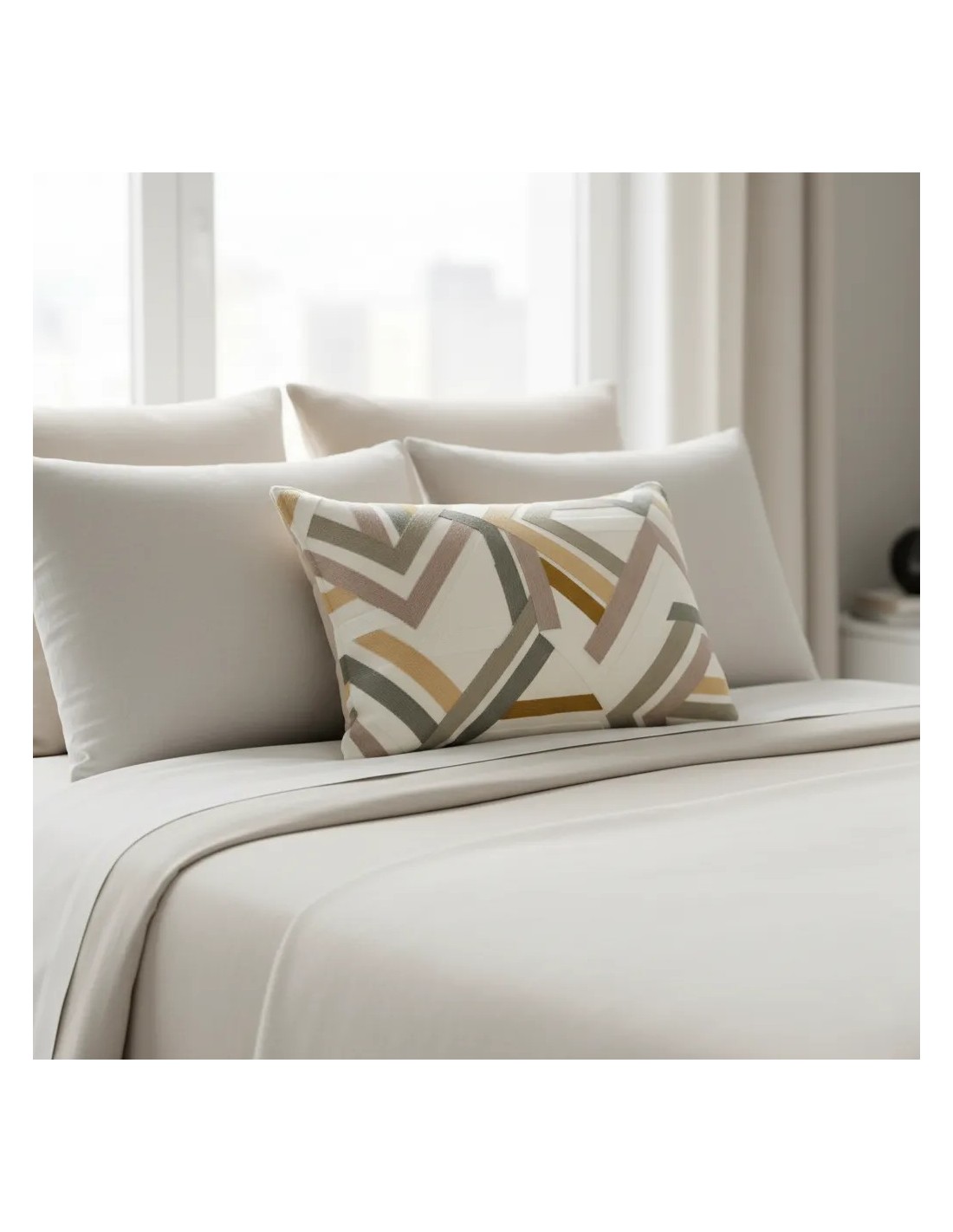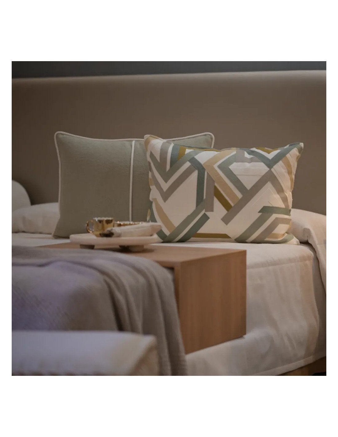 Cojín Bordado aristas beige-verde con relleno premium 70X50