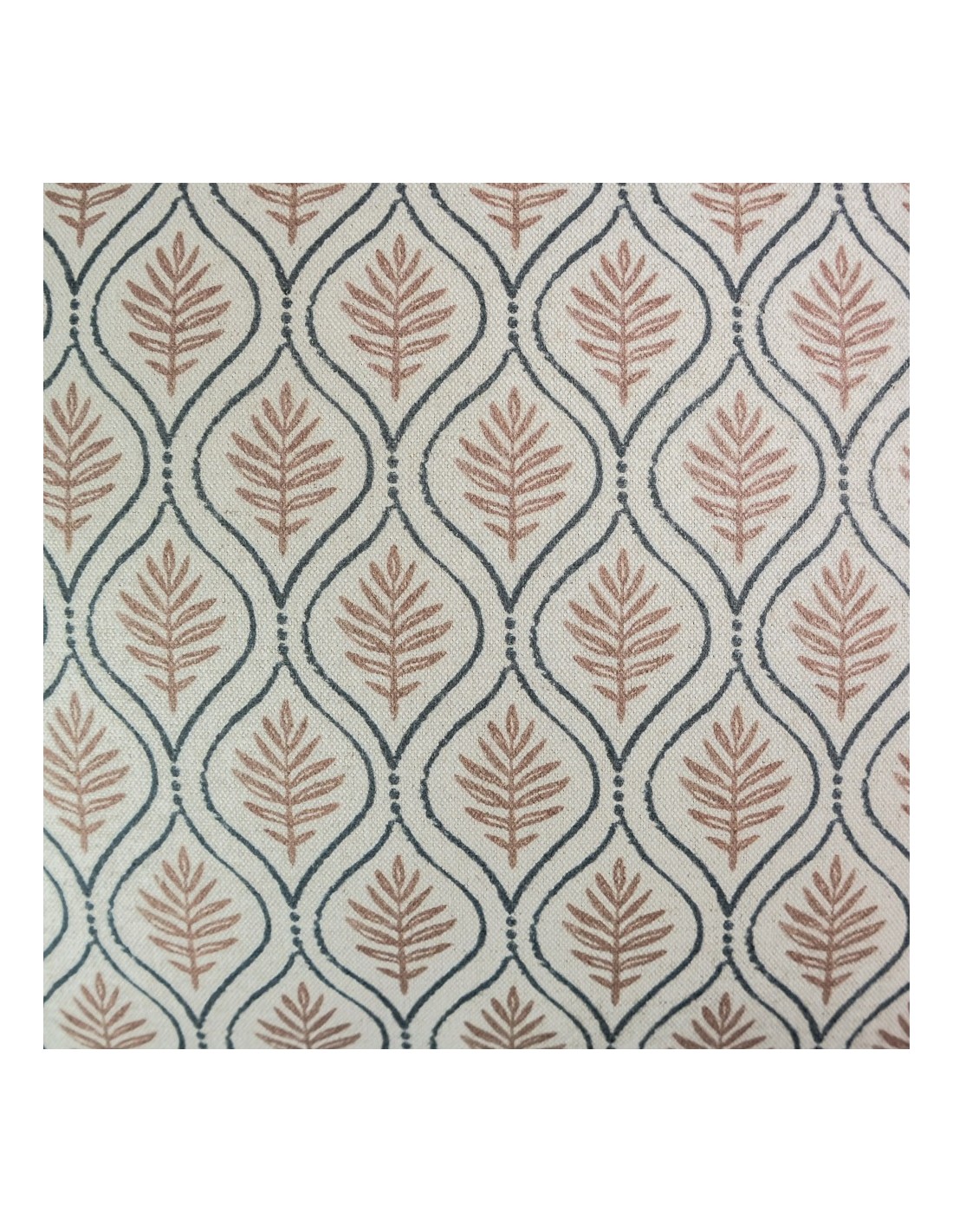 Cojín 50x50 hoja rosa palo fleco espumillón Confeccionado a Mano, Tejido lavable 15º Composición:85% algodón, 15% lino. Relleno Premium Incluido