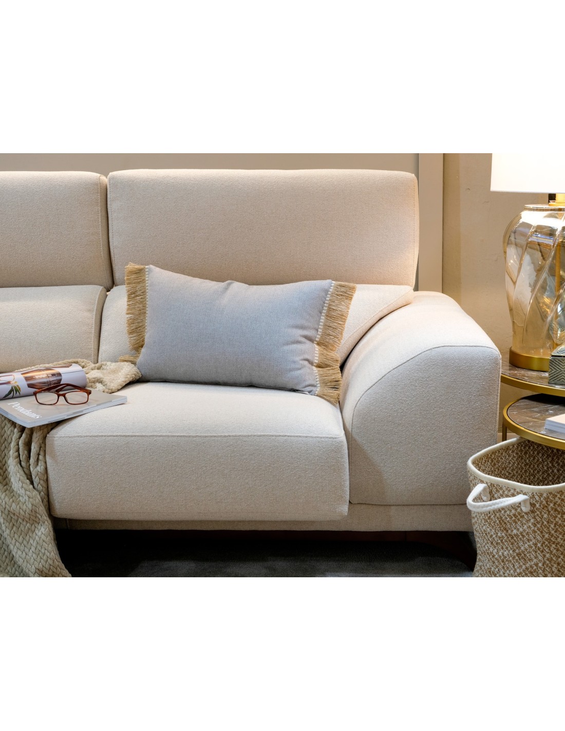 Cojín 50x40 Modelo fleco rafia 7 cmConfeccionado a Mano, Tejido lavable 15º Composición: 100% PoliésterRelleno Premium Incluido