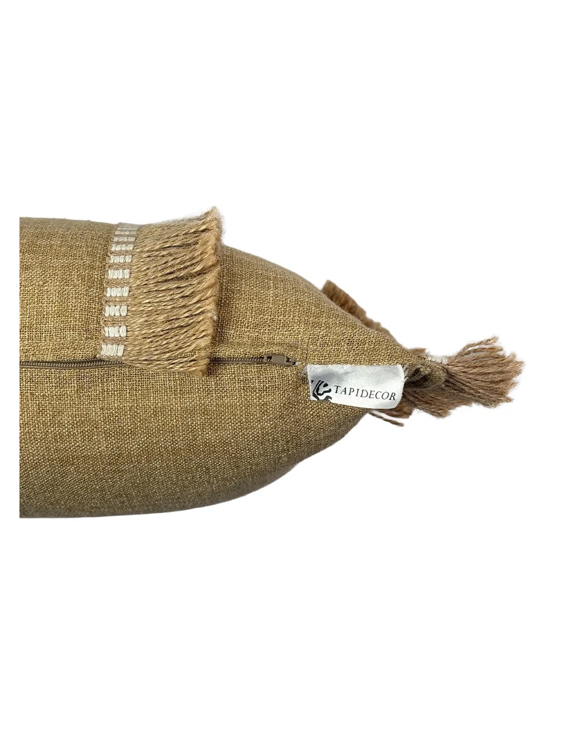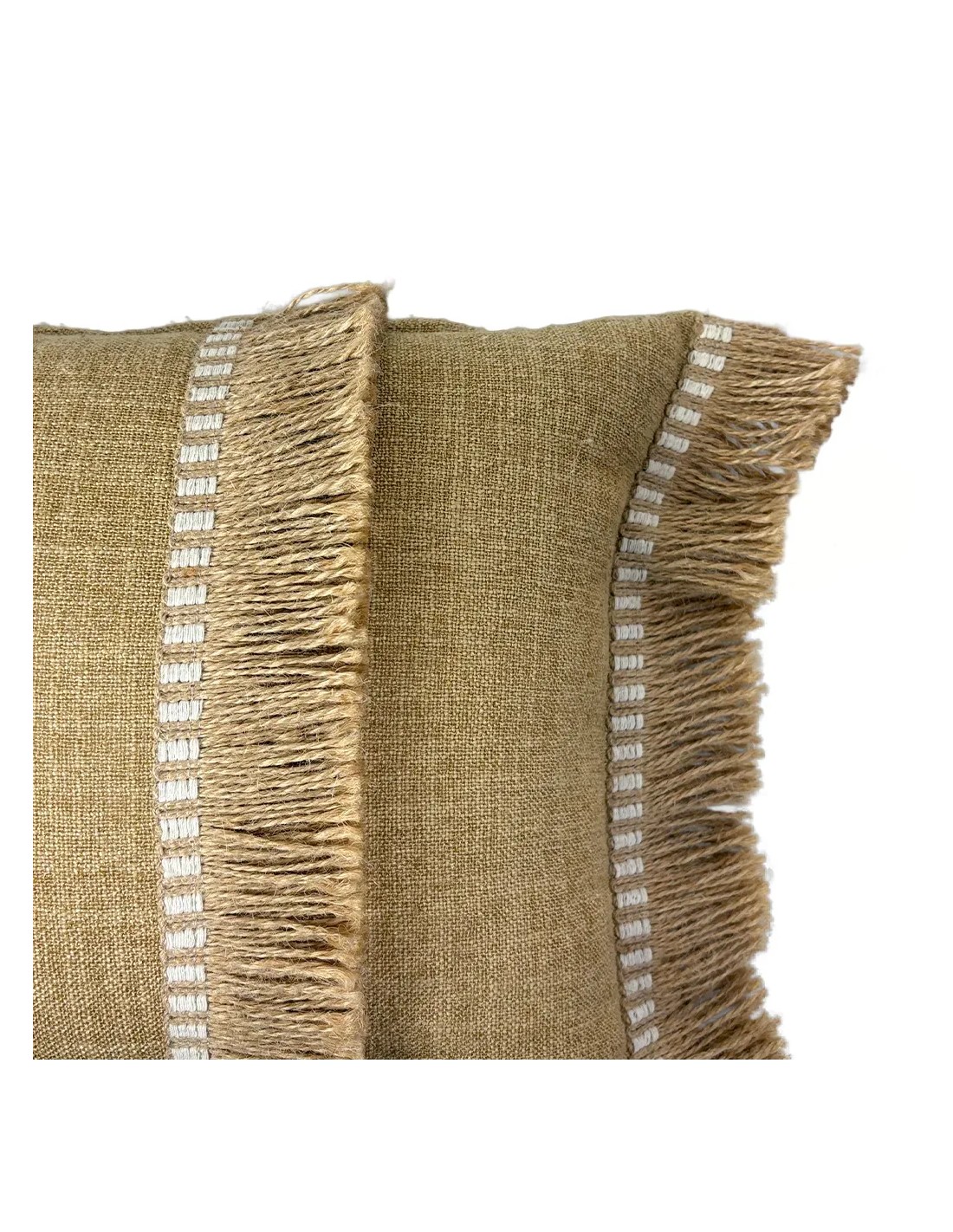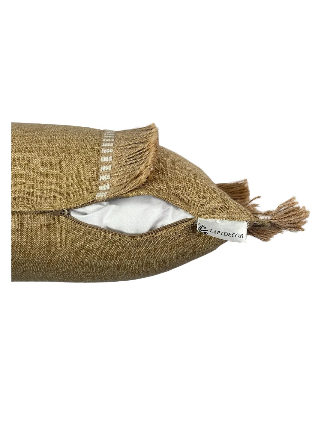 Cojín camel doble fleco rafia con relleno premium 50X30