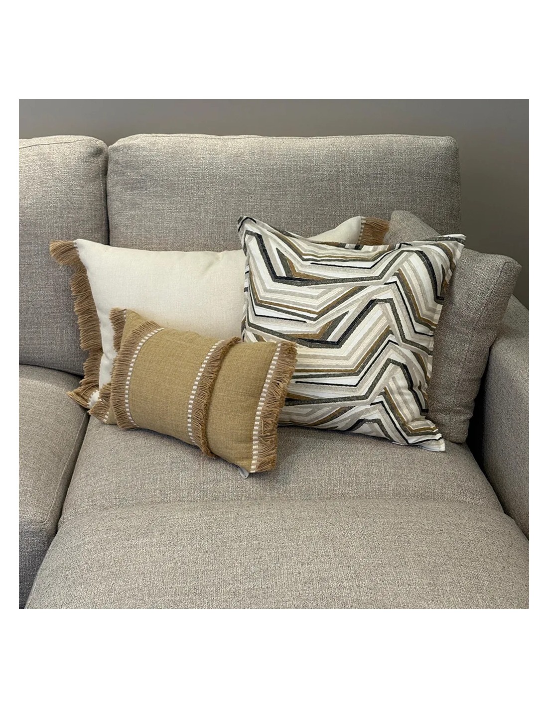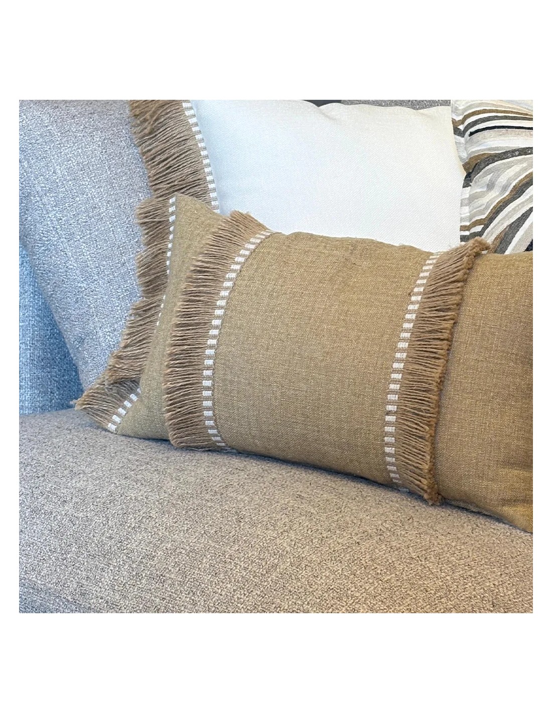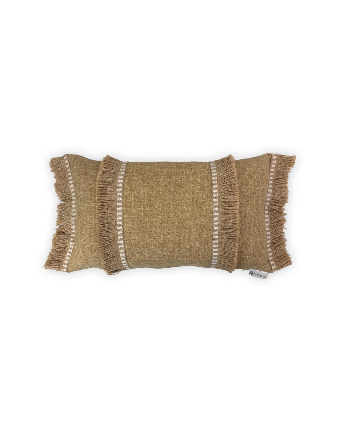 Cojín camel doble fleco rafia con relleno premium 50X30