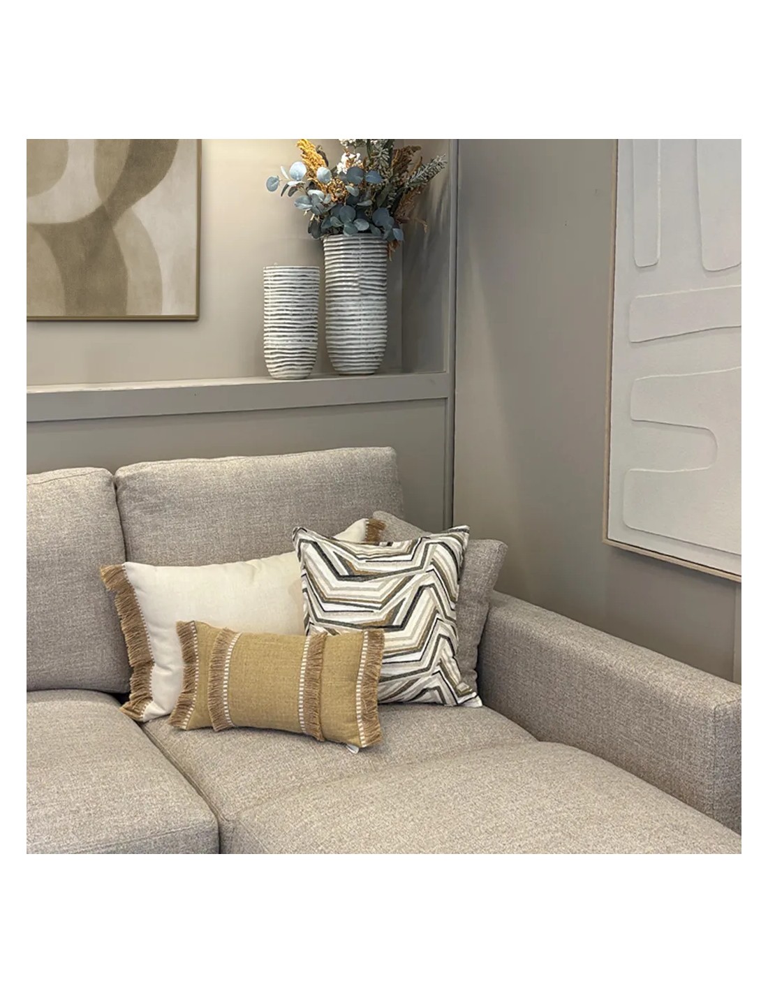 Transforma tu hogar en un oasis de lujo con el cojín camel doble fleco. Confeccionado con los materiales de la más alta calidad, este cojín combina estilo, comodidad y versatilidad. Su textura exquisita y su relleno premium incluido te invitan a relajarte y disfrutar de un ambiente sofisticado en cualquier espacio de tu hogar. Atrévete a elevar tu decoración con este cojín de impacto visual indiscutible.